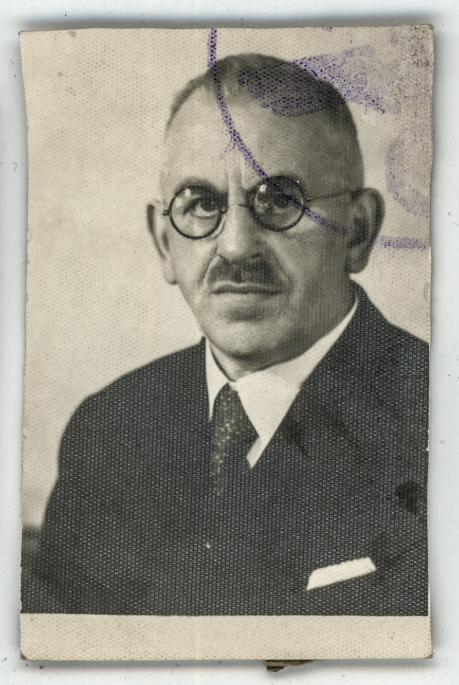 • portret ; mężczyzna ; moda ; moda okresu II wojny światowej ; swastyka ; pieczątka ; pieczęć