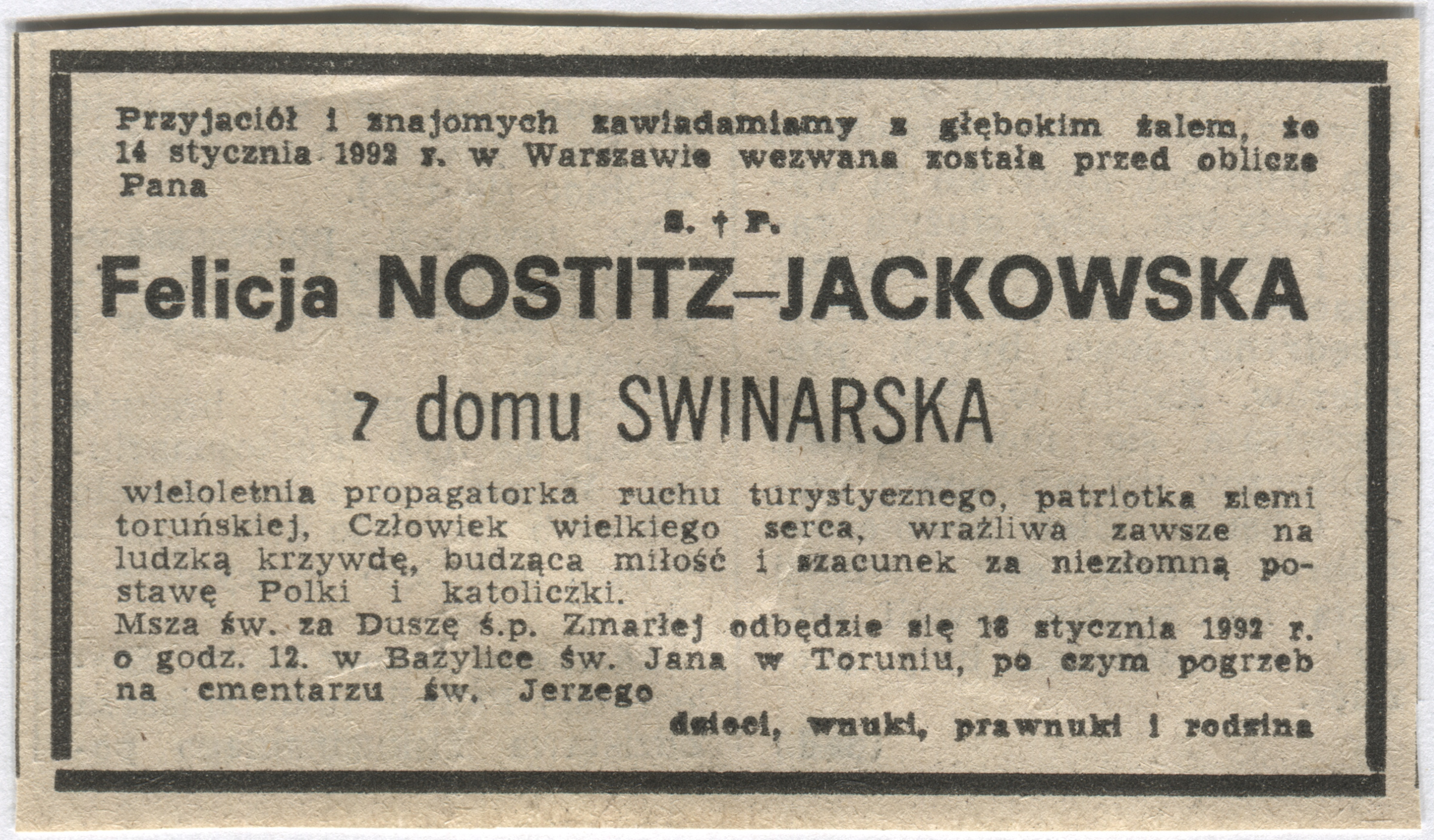 Nekrolog Felicji Nostitz-Jackowskiej