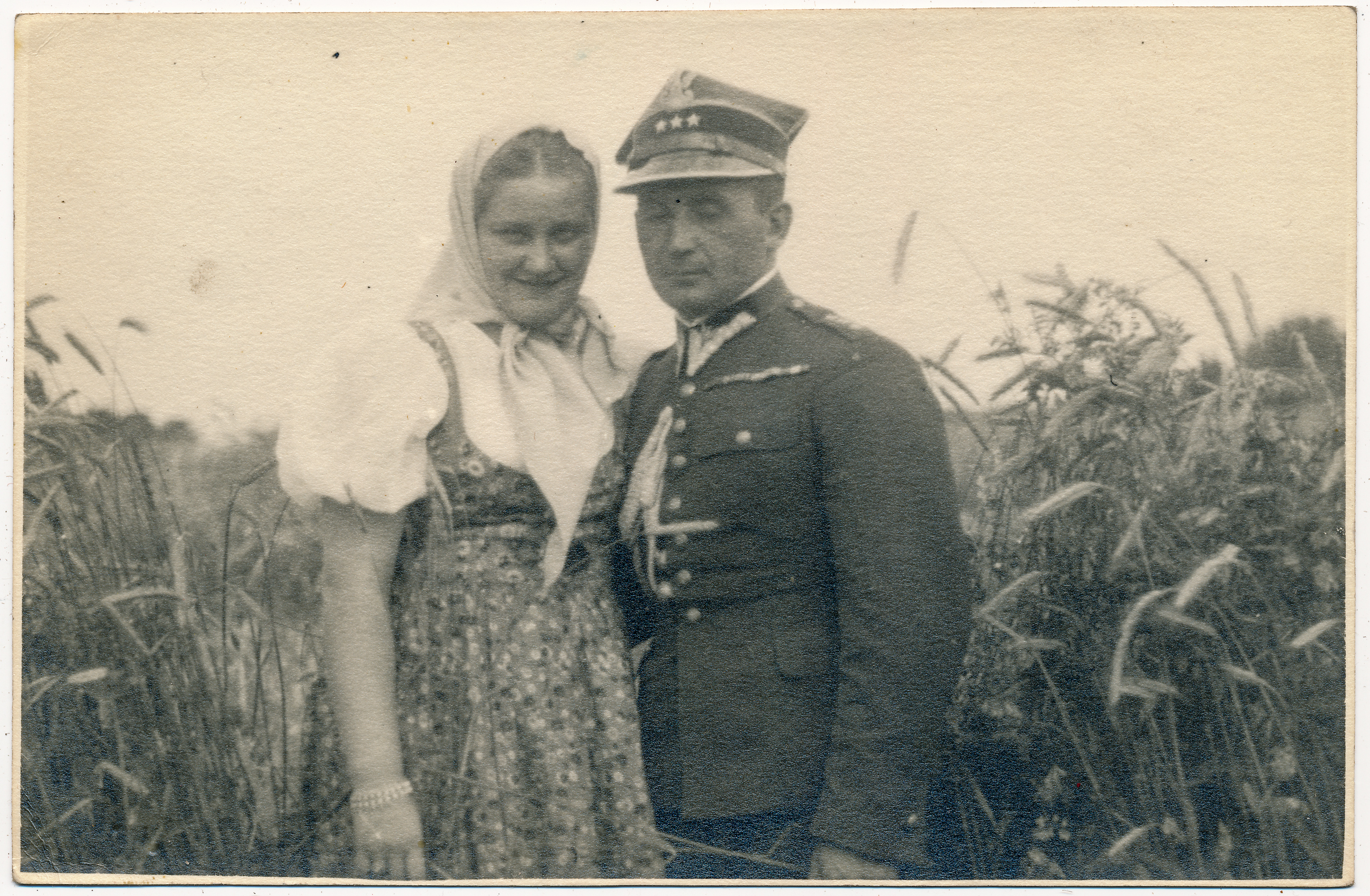 - fotografia ; portret ; kobieta ; mężczyzna ; moda ; zboże ; pole ; mundur wojskowy