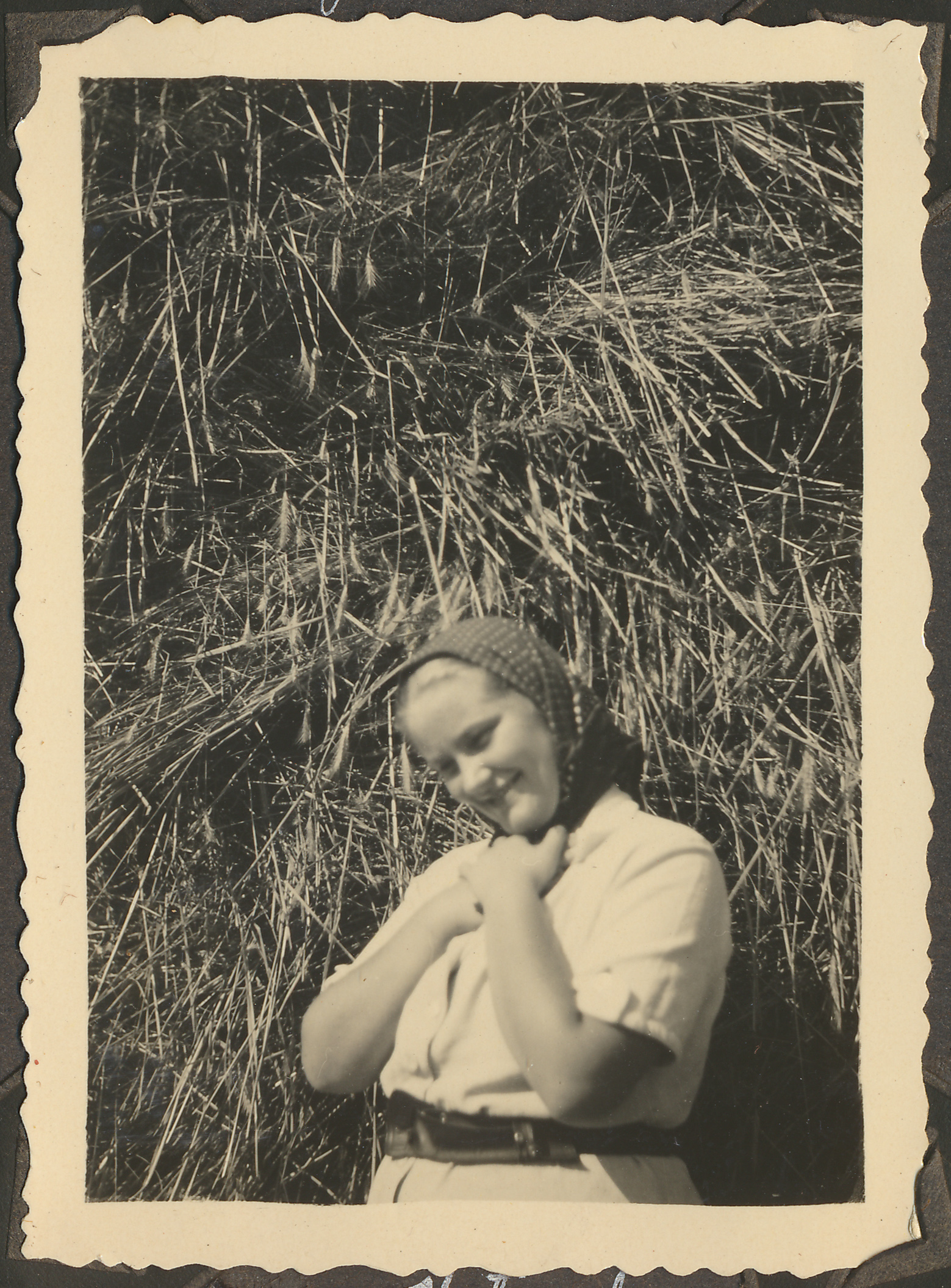 • fotografia ; dziewczyna ; stóg ; pole ; wieś