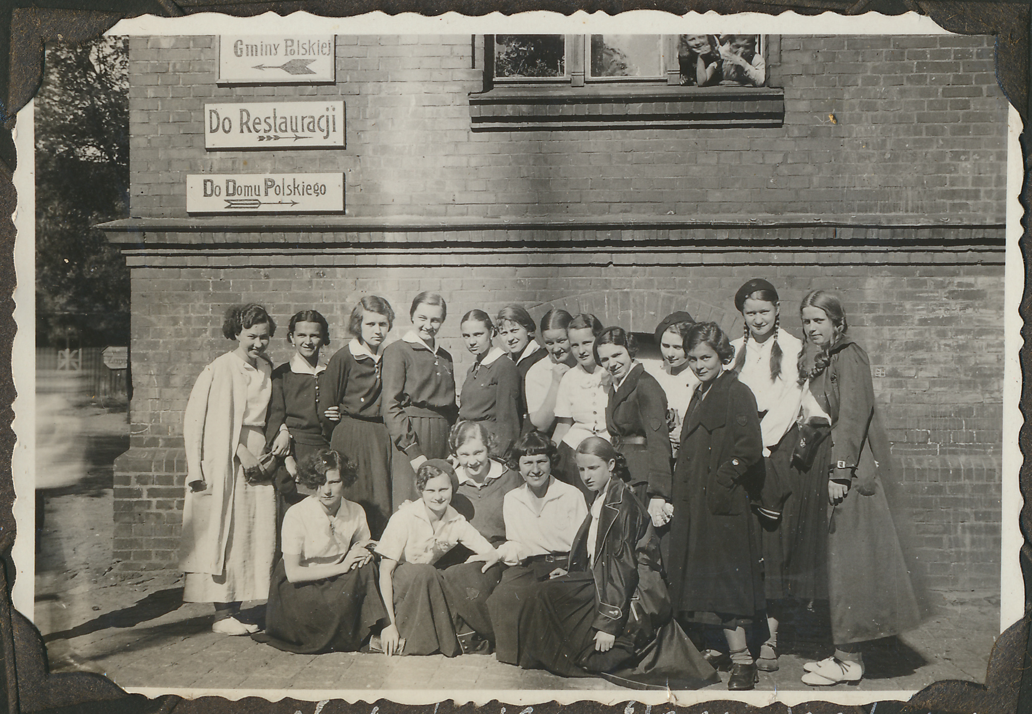 Uczennice toruńskiego Miejskiego Gimnazjum Żeńskiego przed Domem Polskim w Gdańsku