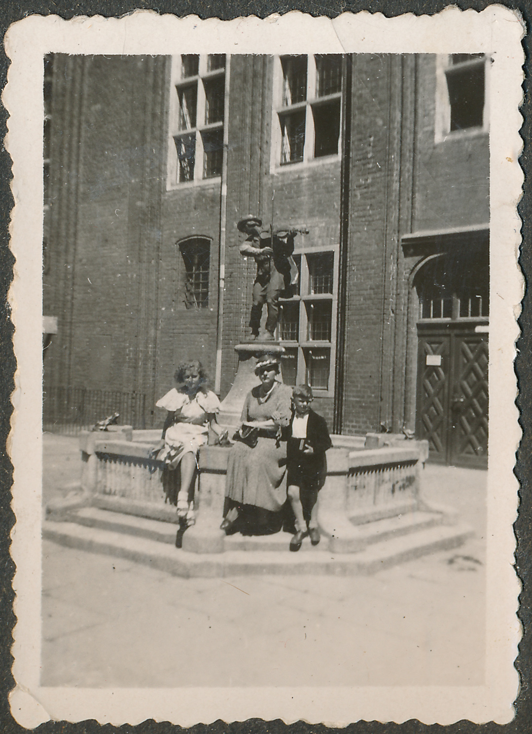 • fotografia ; kobieta ; dziewczyna ; dziecko ; chłopiec ; pomnik Flisaka w Toruniu ; Ratusz Staromiejski w Toruniu ; moda ; moda międzywojenna