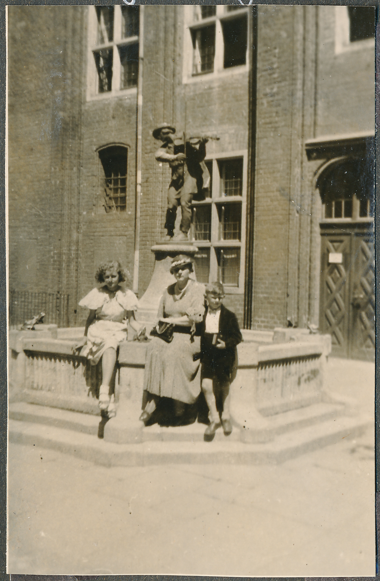 • fotografia ; kobieta ; dzieci ; chłopiec ; dziewczyna ; pomnik Flisaka w Toruniu ; Ratusz Staromiejski w Toruniu ; moda ; moda międzywojenna