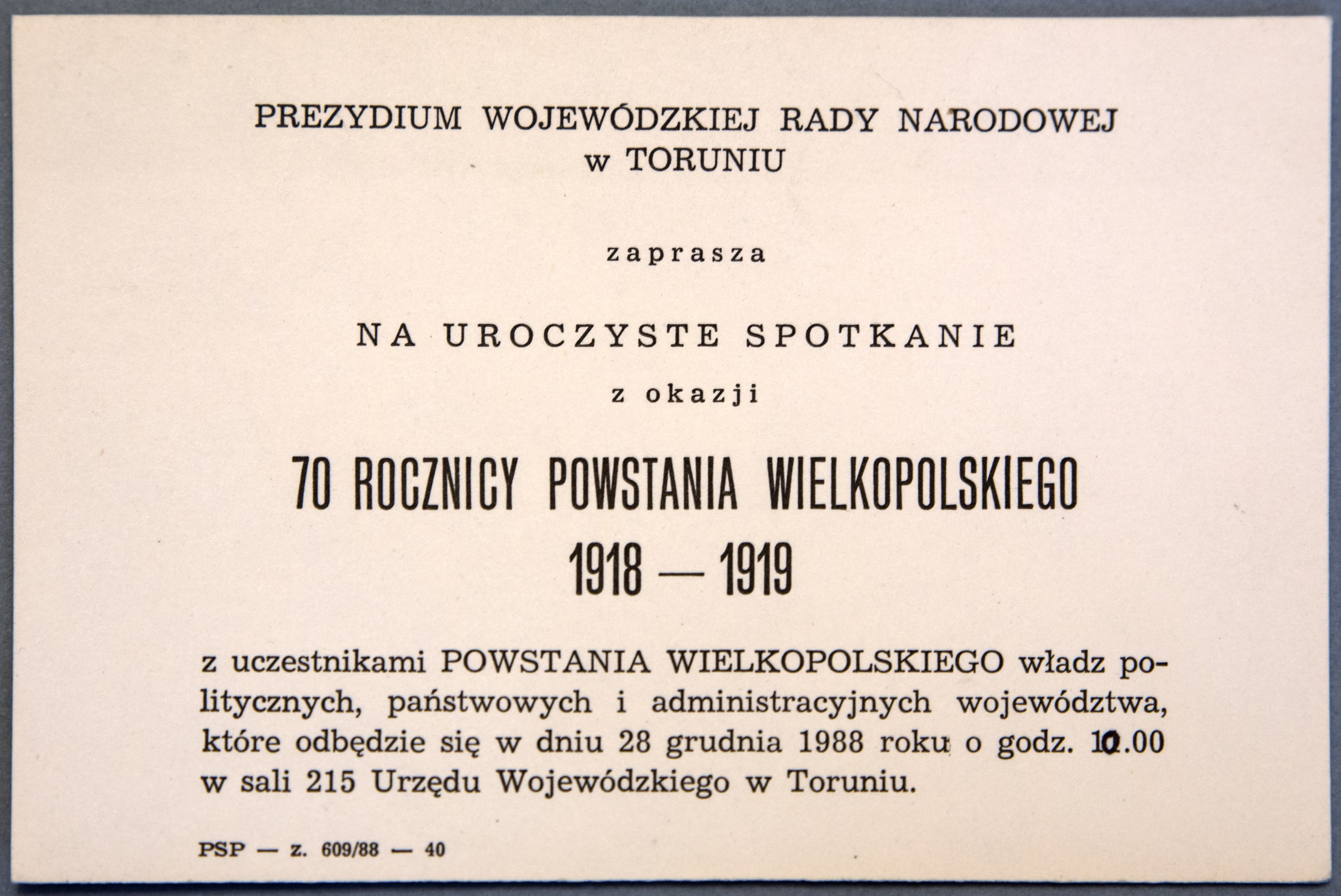 • dokument ; zaproszenie ; powstanie wielkopolskie ; weteran wojenny ; powstaniec ; Wojewódzka Rada Narodowa