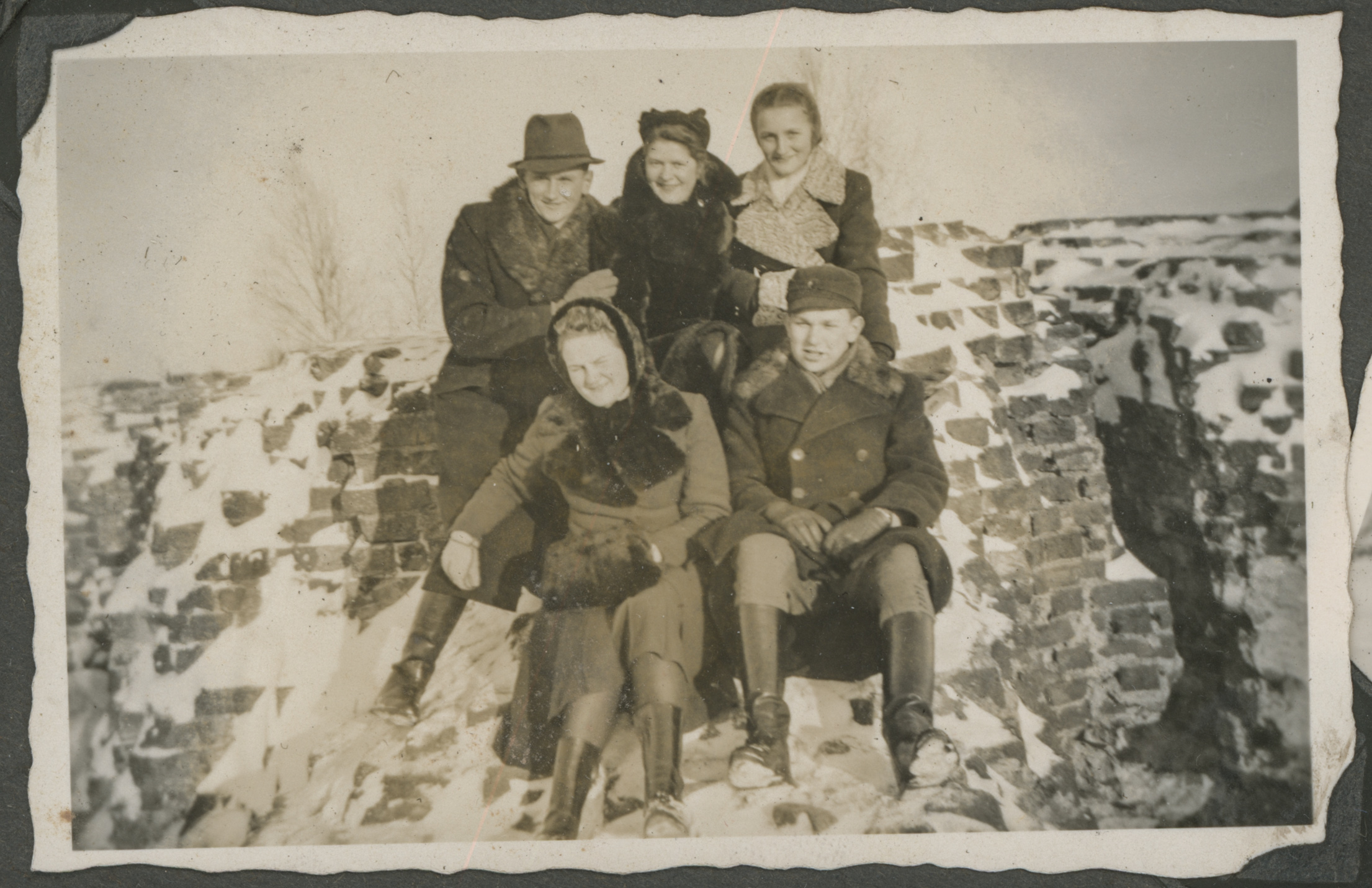 • fotografia ; portret ; zima ; śnieg ; ruiny zamku w Wąbrzeźnie ; zamek w Wąbrzeźnie ; moda ; moda okresu II wojny światowej