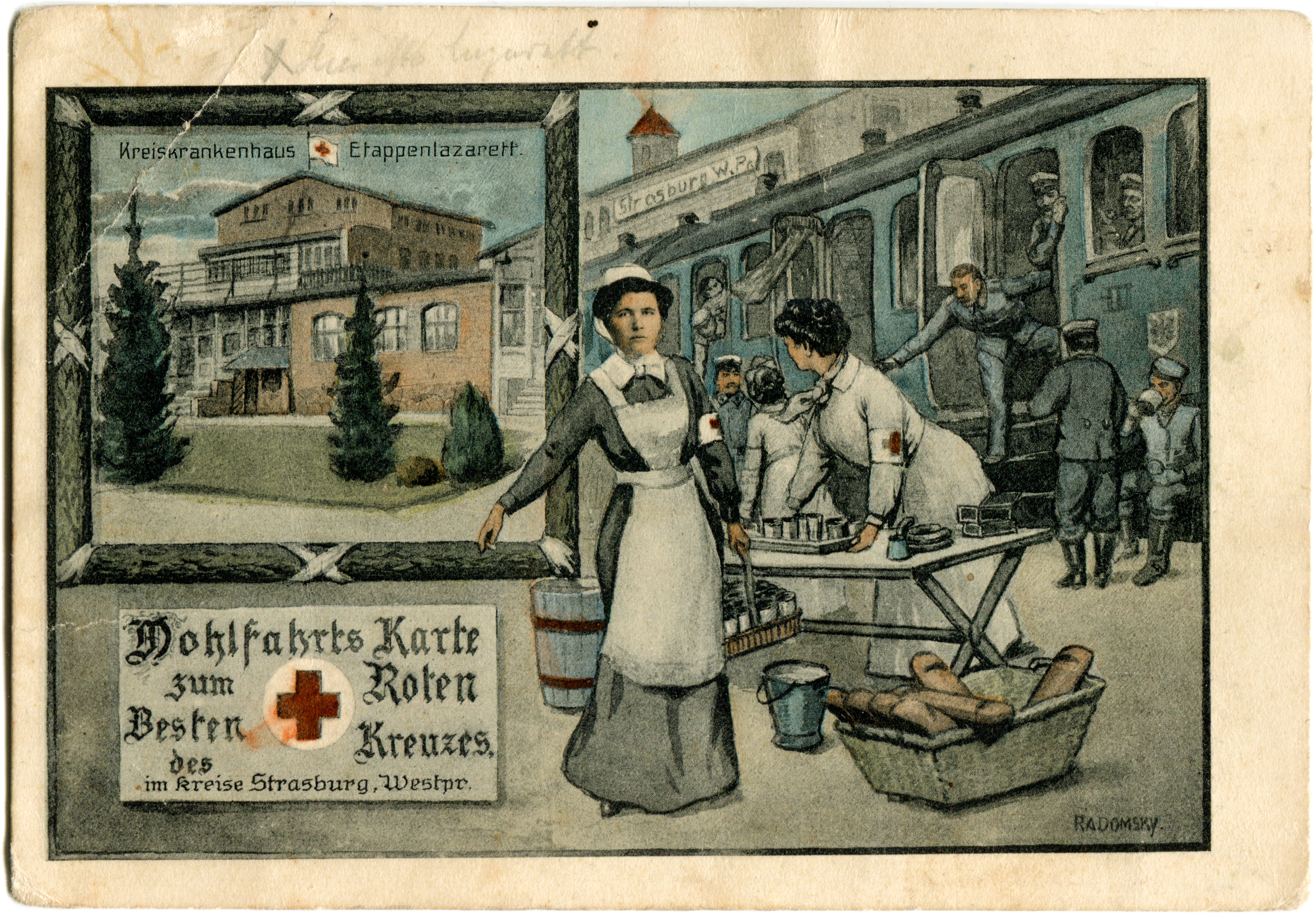 Kreiskrankenhaus, Etappenlazarett, Strasburg W. Pr., Wohlfahrts Karte zum Besten des Roten Kreuzes im Kreise Strasburg, Westpr.