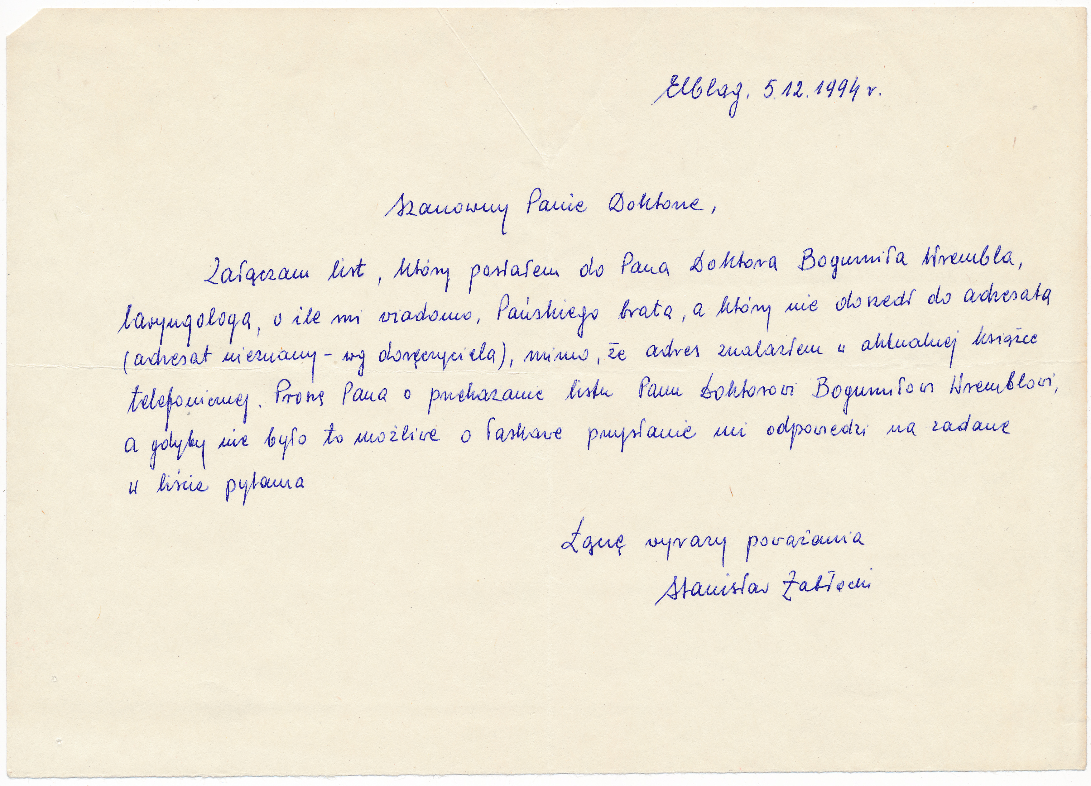List do Bogdana Wrembla od Stanisława Zabłockiego
