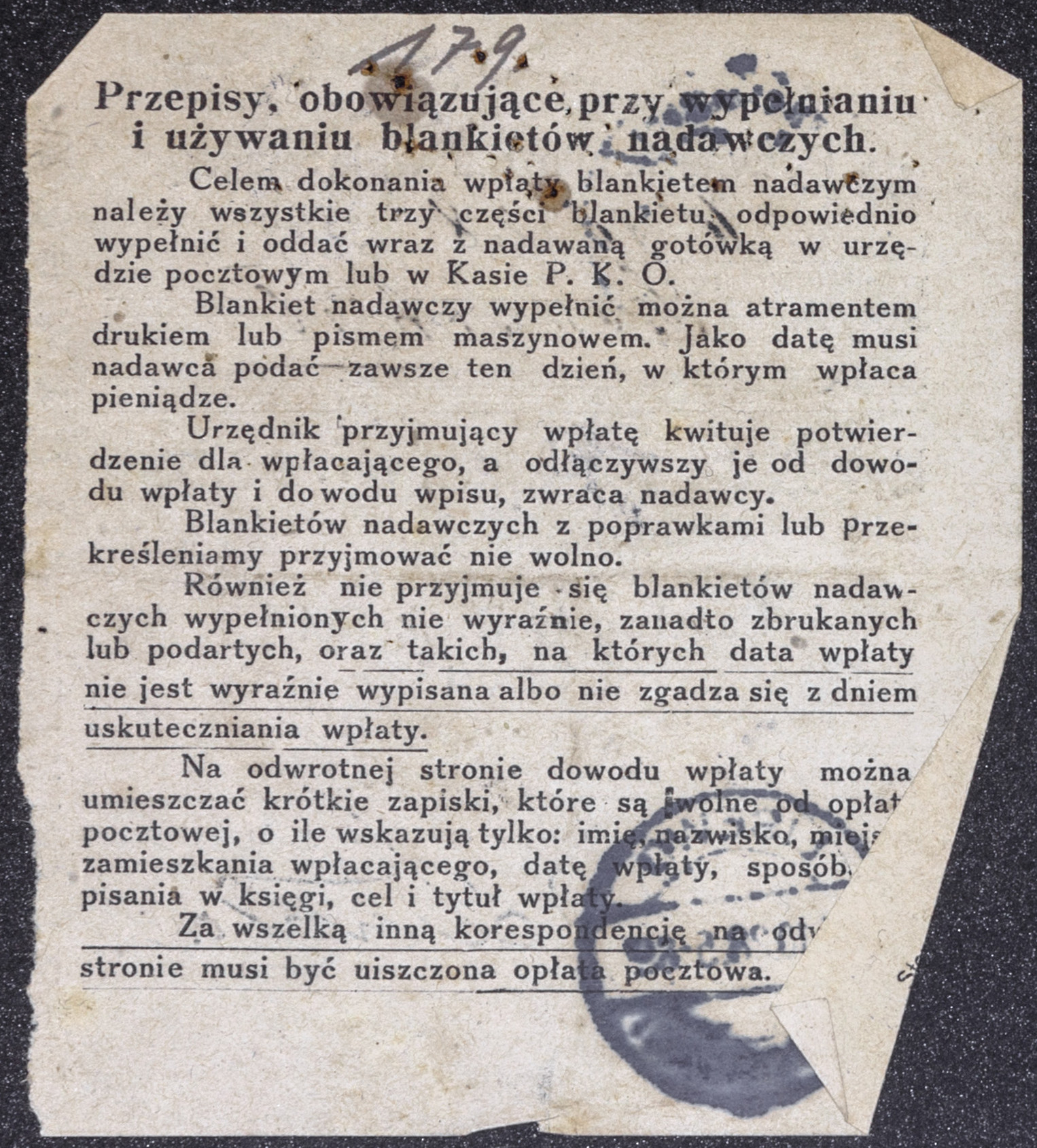 • dokument ; potwierdzenie wpłaty ; Państwowy Bank Rolny Oddział w Grudziądzu ; konto czekowe ; Pocztowa Kasa Oszczędności ; stempel ; Lisewo ; Poczta Polska ; regulamin ; blankiet nadawczy