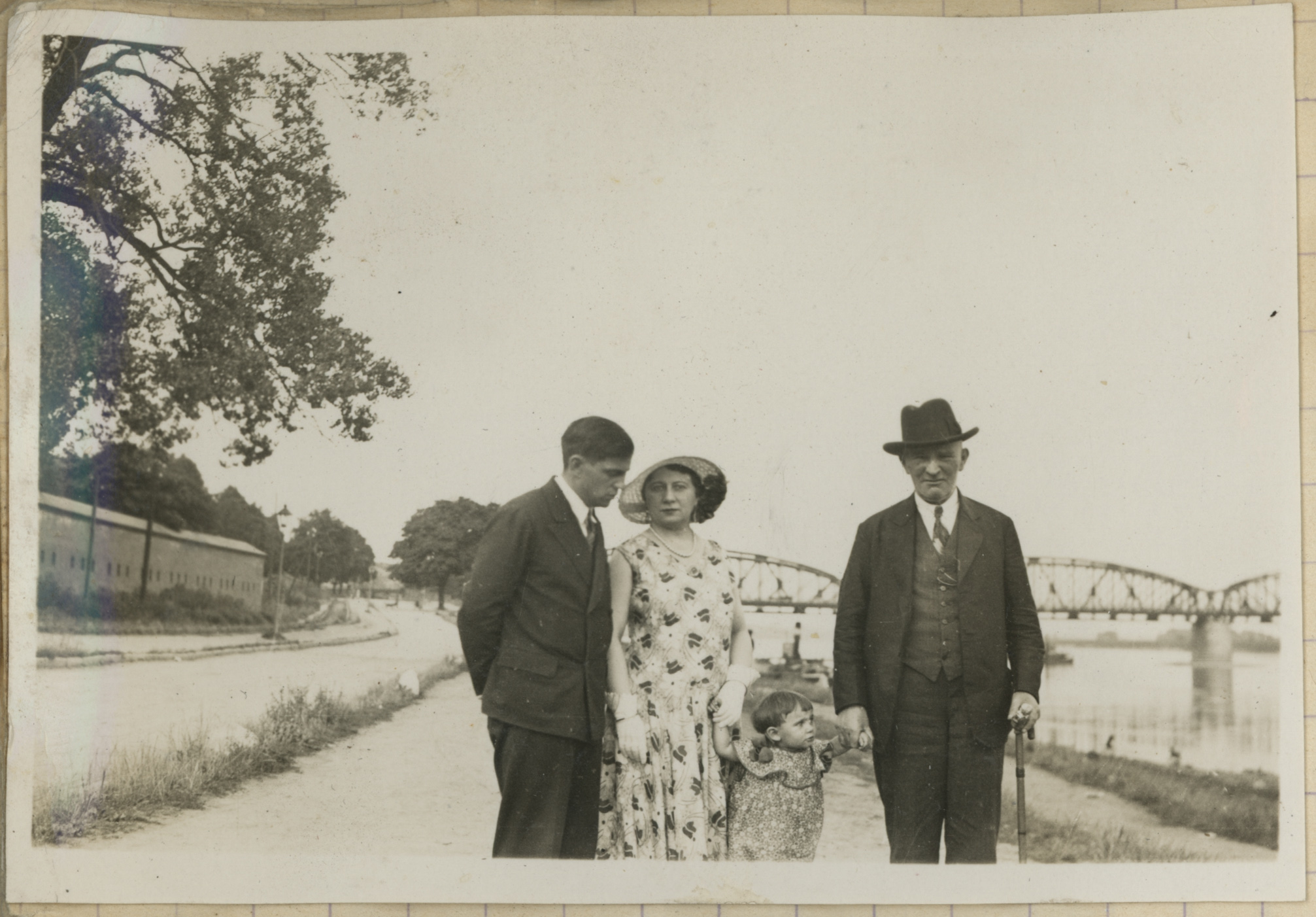 • fotografia ; portret ; kobieta ; mężczyzna ; dziewczynka ; dziecko ; rzeka ; Wisła ; most kolejowy w Toruniu