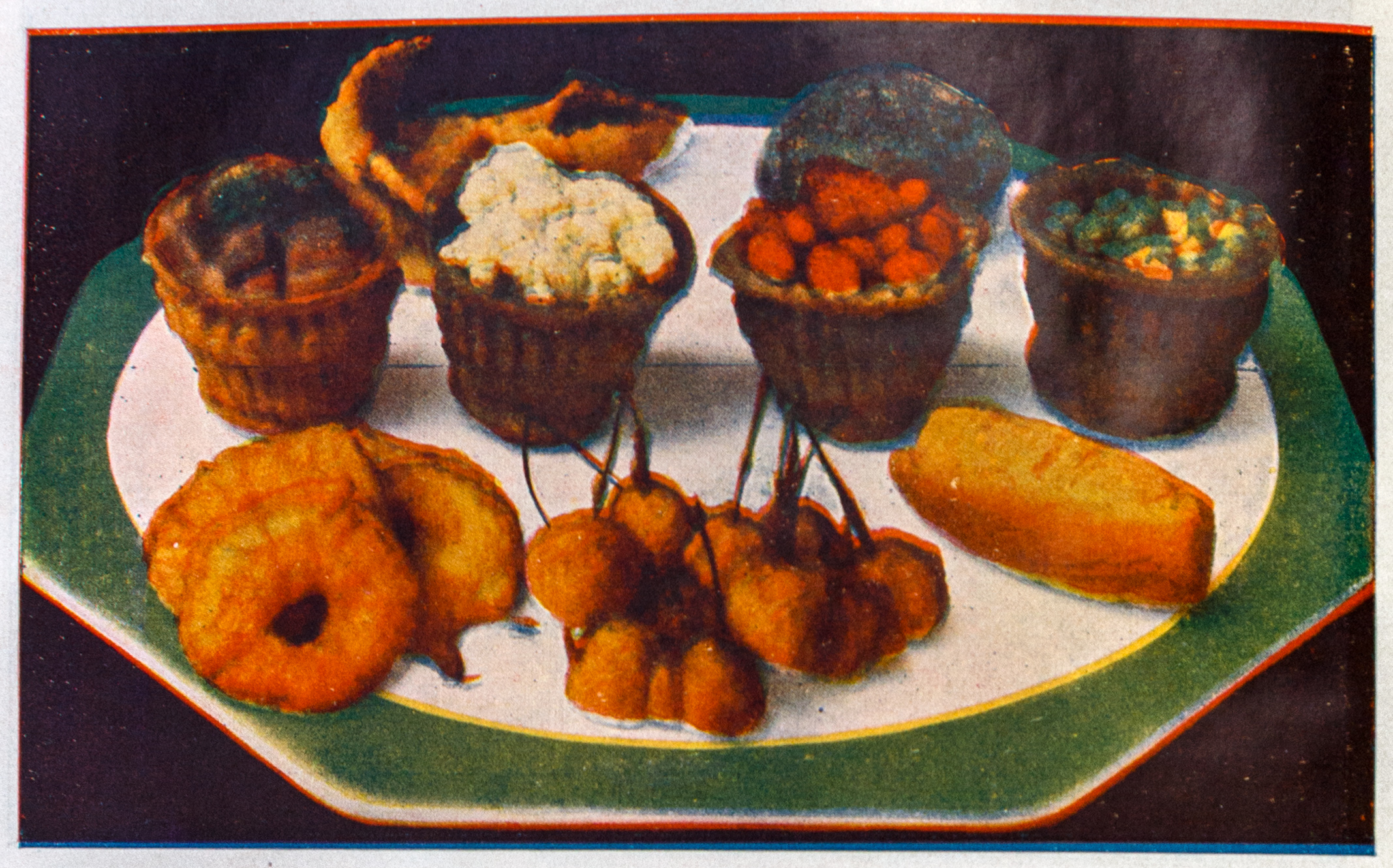 - książka kucharska ; książka ; kuchnia polska ; przepis kulinarny ; gotowanie ; potrawa ; danie ; deser ; zastawa stołowa ; nakrycie stołu ; stół ; faworek ; pączek ; owoce ; ciastko