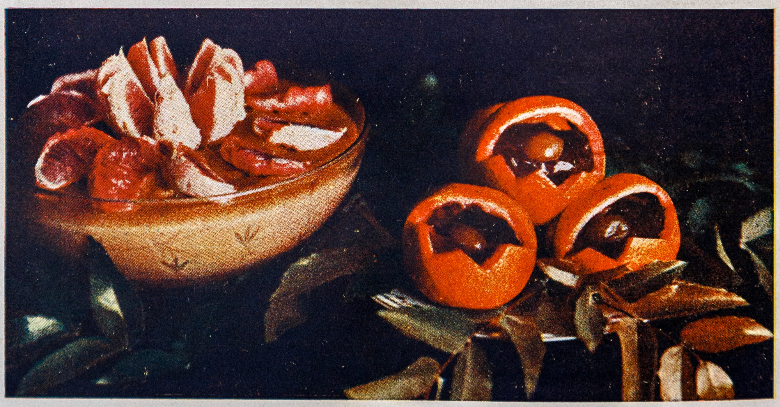 • książka kucharska ; książka ; kuchnia polska ; przepis kulinarny ; gotowanie ; potrawa ; danie ; deser ; zastawa stołowa ; nakrycie stołu ; stół ; krem ; owoce ; pomarańcza