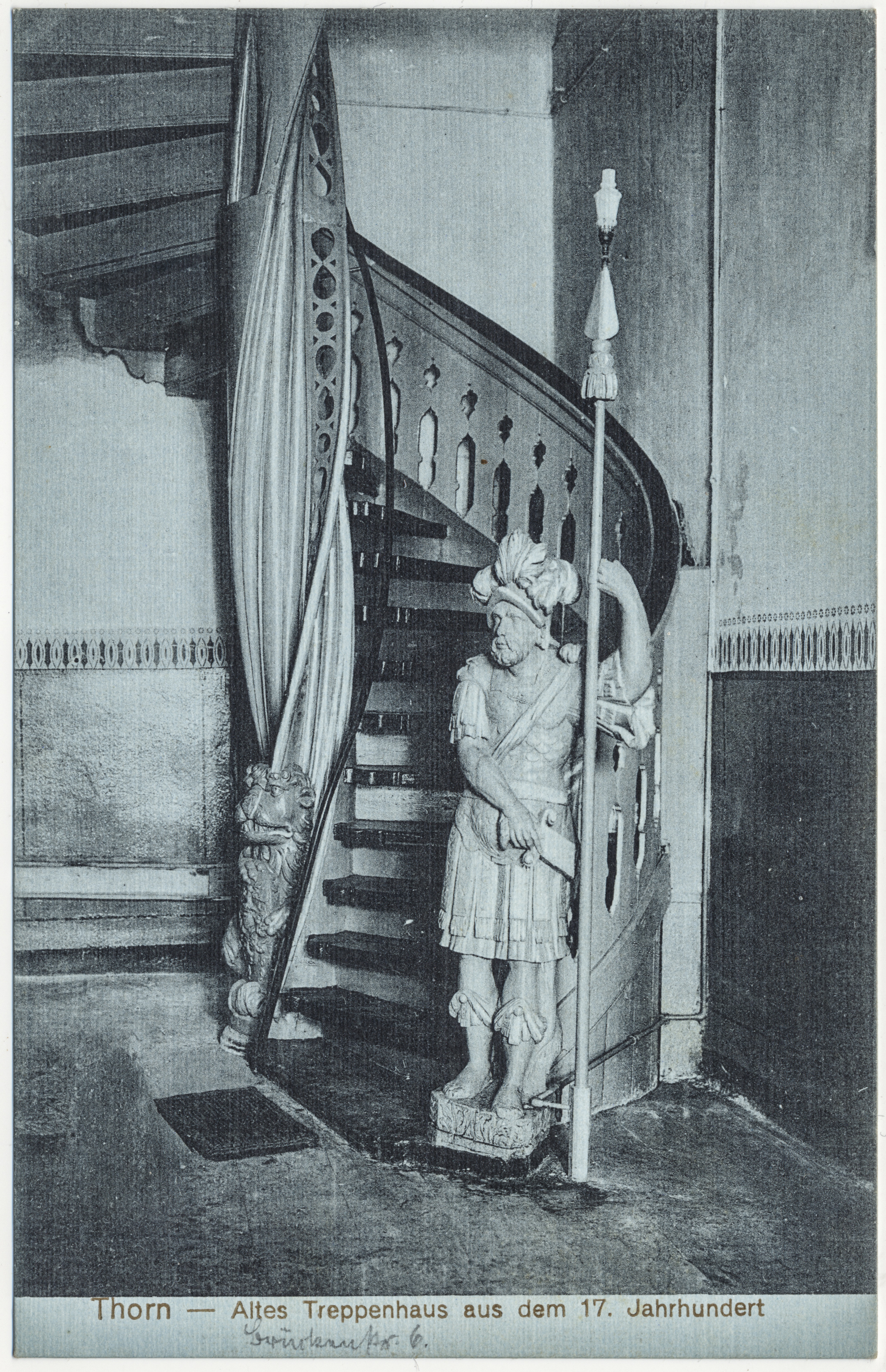 • klatka schodowa ; barok ; lew ; żołnierz ; rzeźba ; kamienica ; Toruń