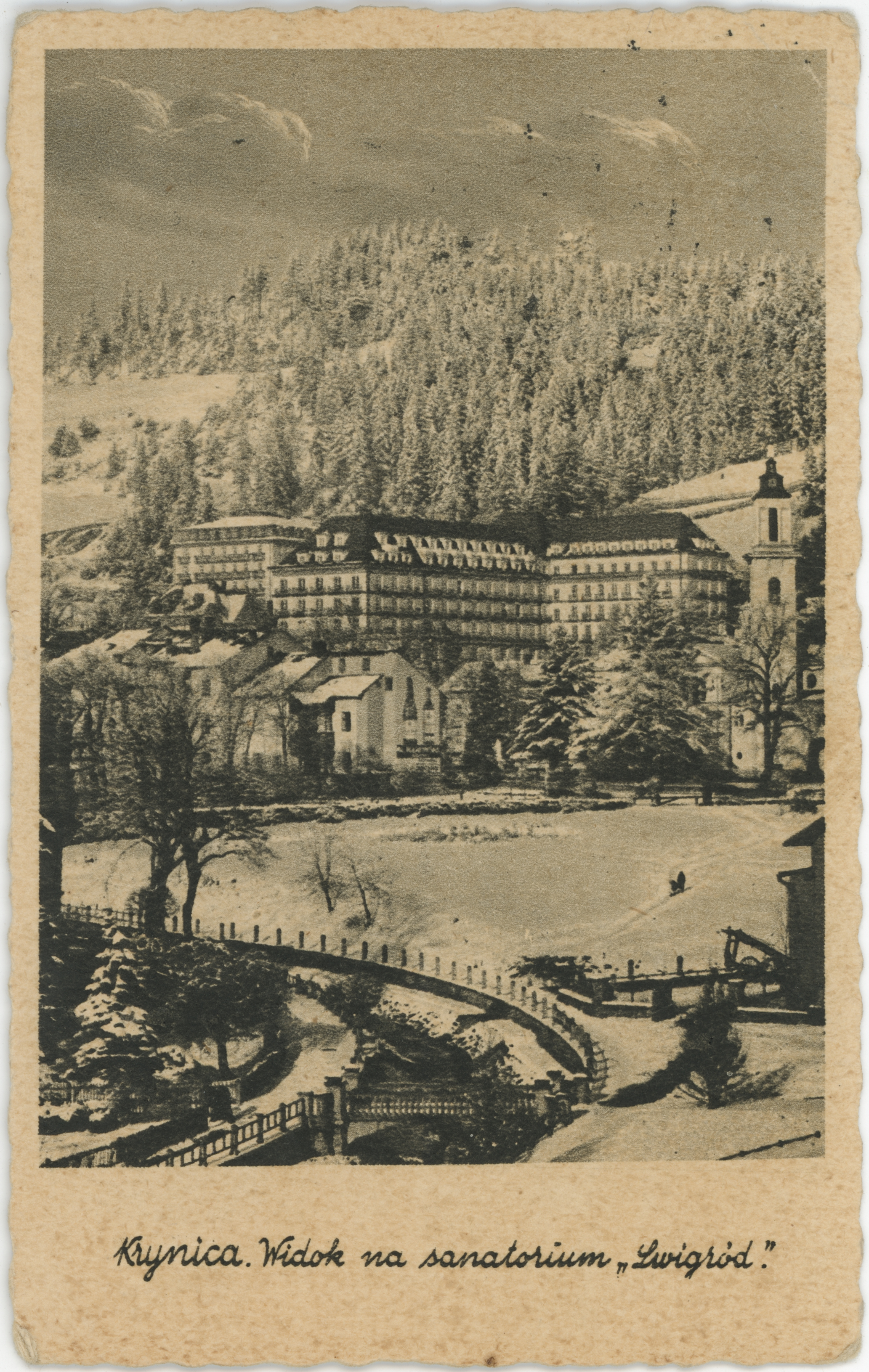 • pocztówka ; fotografia ; sanatorium ; uzdrowisko ; Krynica-Zdrój ; Jasiennik ; Lwigród ; Kościół Najświętszej Marii Panny w Krynicy-Zdrój