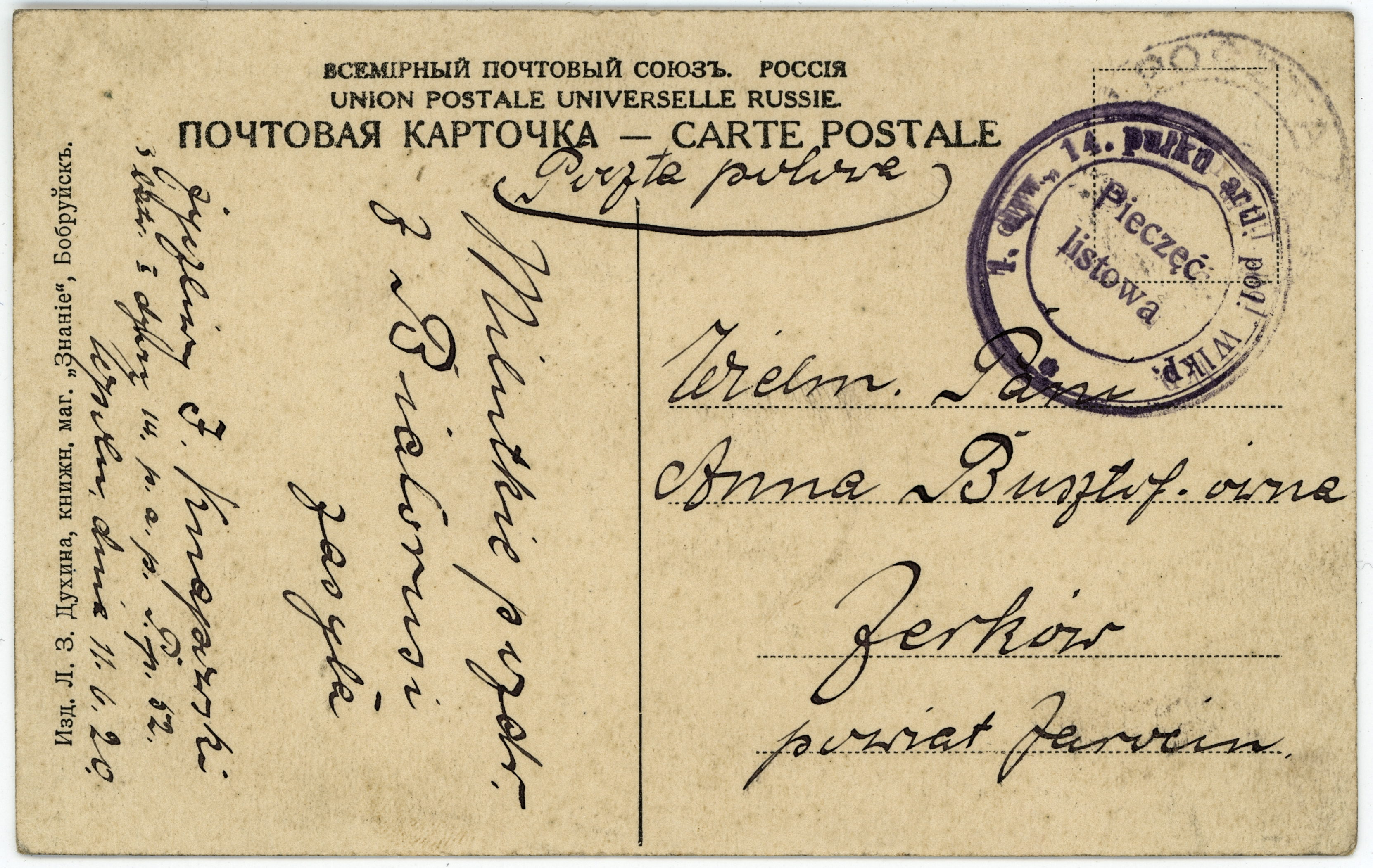 • pocztówka ; fotografia ; architektura ; architektura drewniana ; Osipowicze ; Białoruś