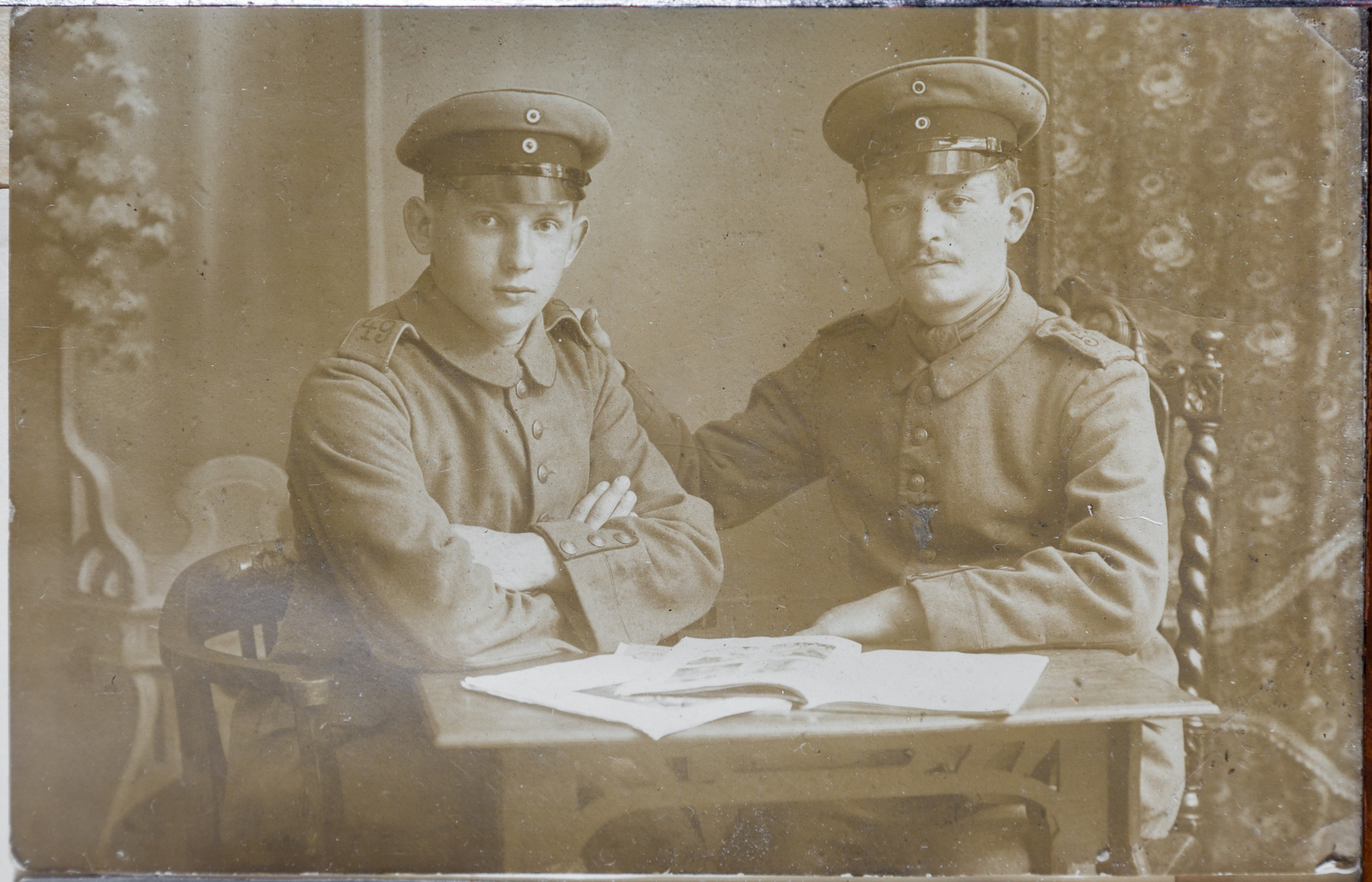 • fotografia ; portret ; żołnierz ; mundur ; mundur wojskowy ; mundur pruski ; 49. Pułk Piechoty ; 51. Pułk Piechoty ; stolik