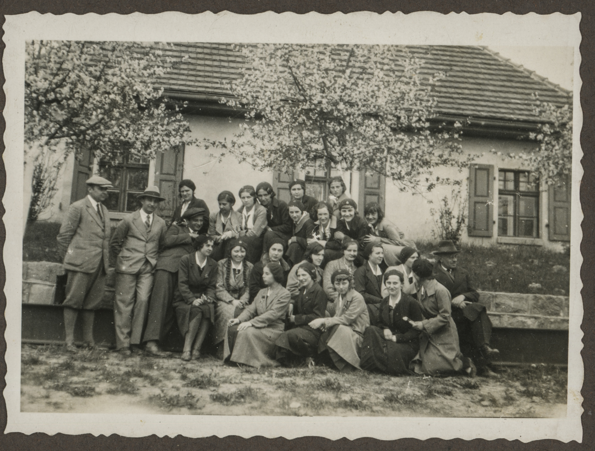 • fotografia ; portret ; dziewczyna ; uczennica ; mężczyzna ; nauczyciel ; moda ; moda międzywojenna ; mundurek szkolny ; drzewo owocowe