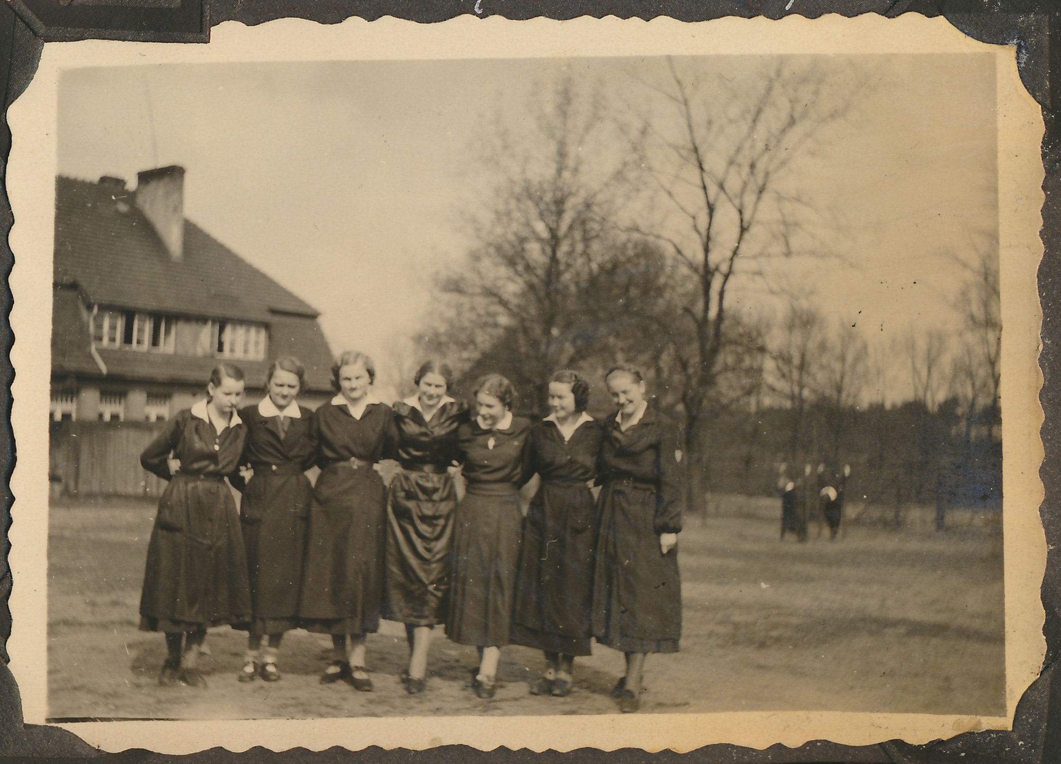 • fotografia ; portret ; dziewczyna ; kobieta ; mundurek szkolny ; strój szkolny ; szkoła ; gimnazjum ; plener ; Miejskie Gimnazjum Żeńskie w Toruniu