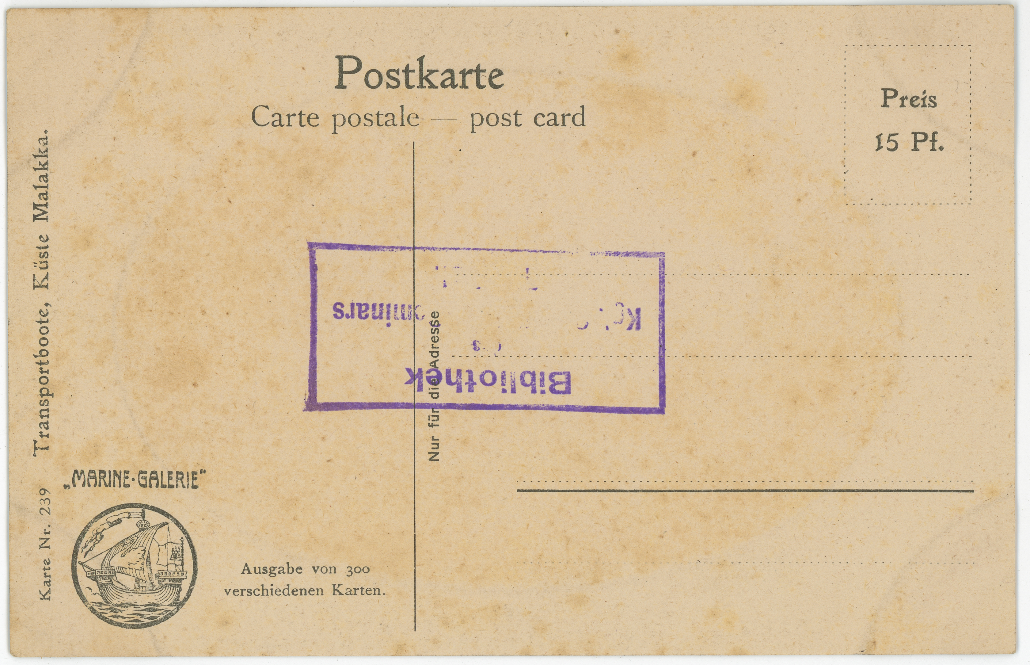 • pocztówka ; obraz ; łódź ; żagiel ; maszt ; żegluga ; morze ; Malakka ; Półwysep Malajski ; „Marina-Galerie” ; marynistyka