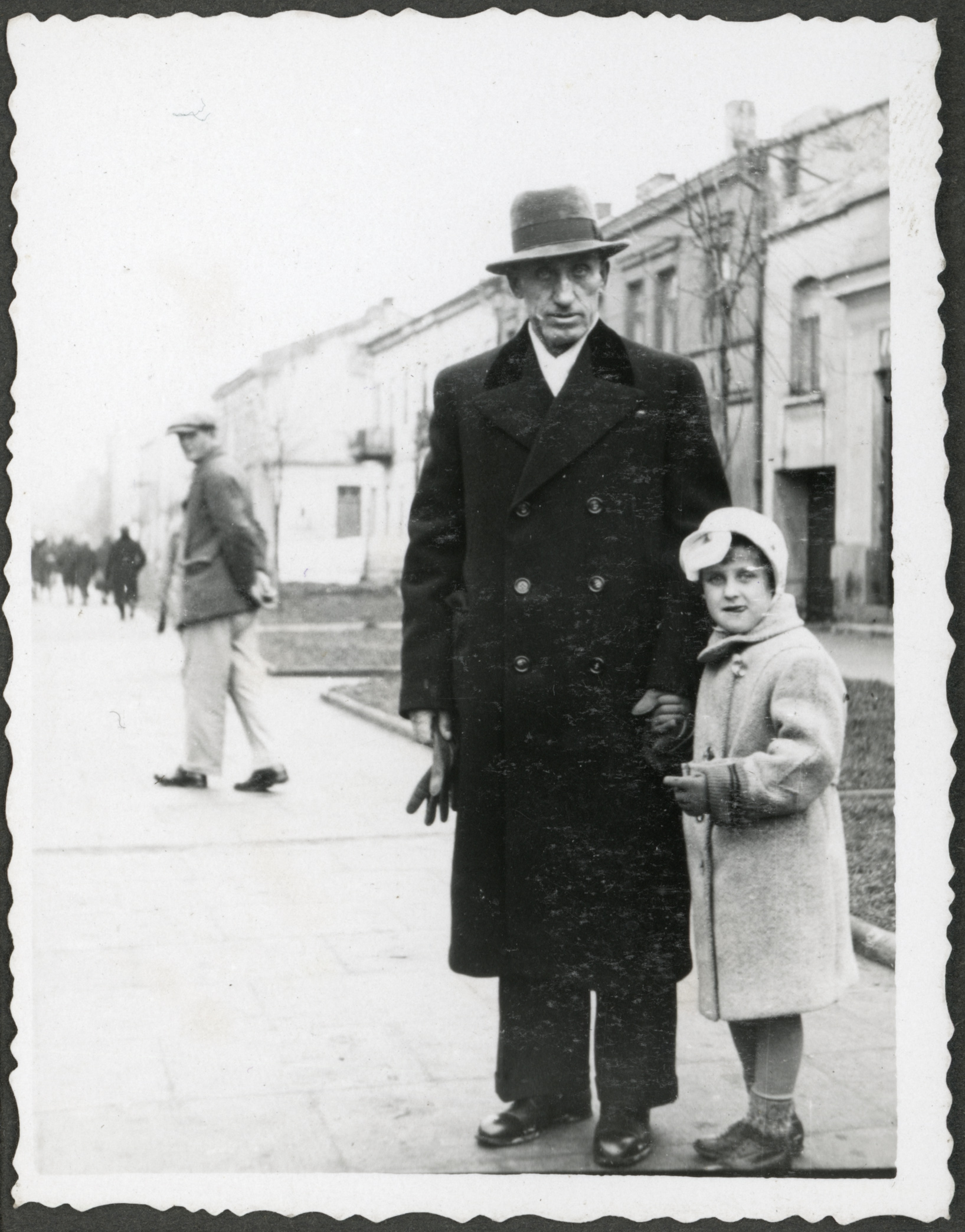 • fotografia ; dziewczynka ; mężczyzna ; ulica ; miasto ; zabudowania