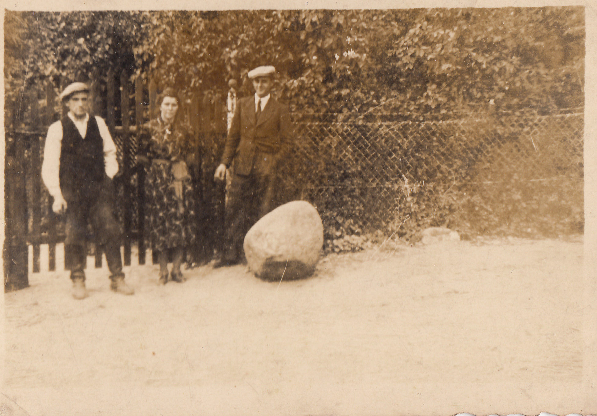• portret ; kobieta ; mężczyzna ; Płowężyk ; moda ; moda międzywojenna ; plener ; płot