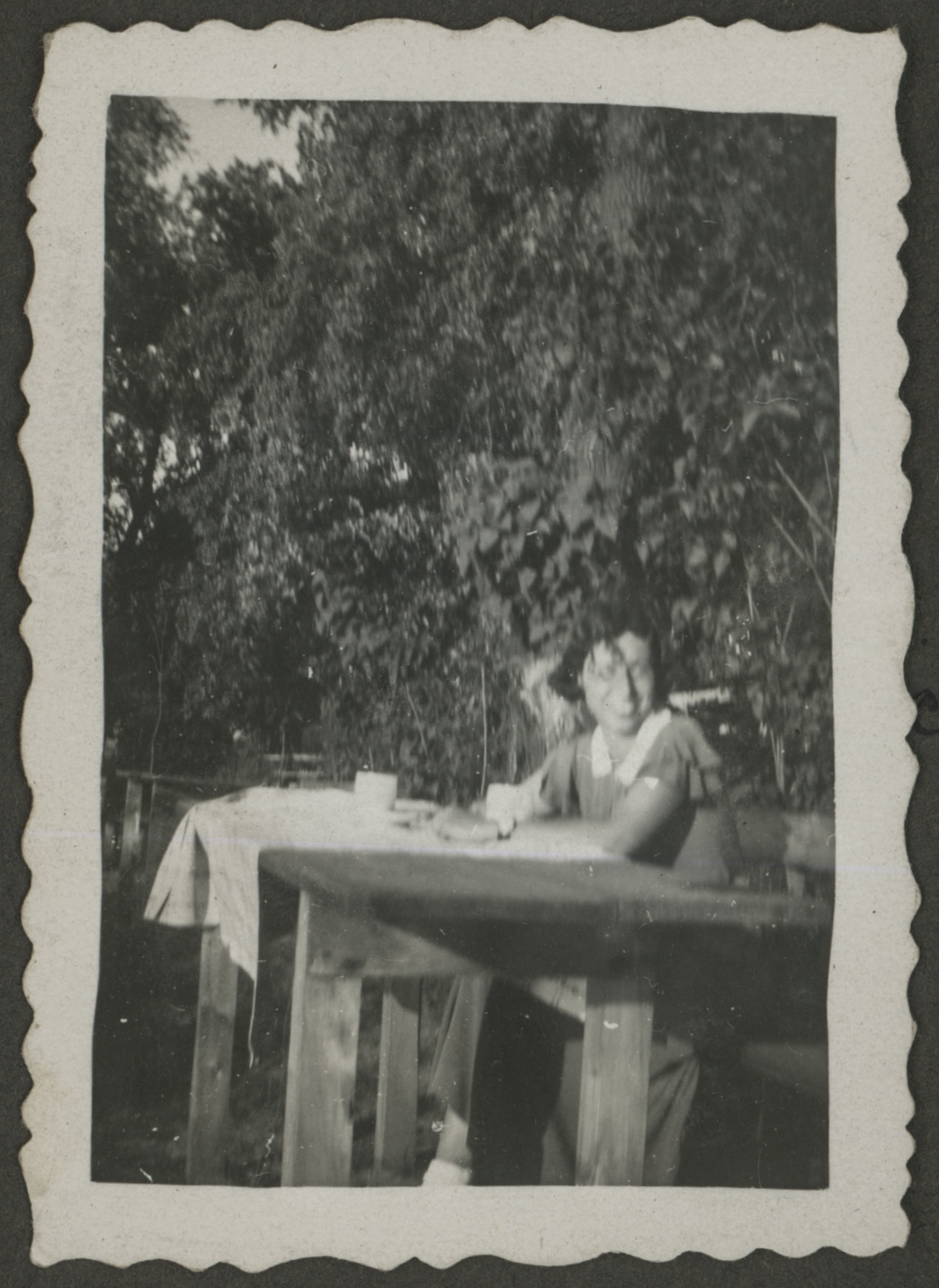 - fotografia ; kobieta ; moda ; moda międzywojenna ; ogród ; stół ; lato