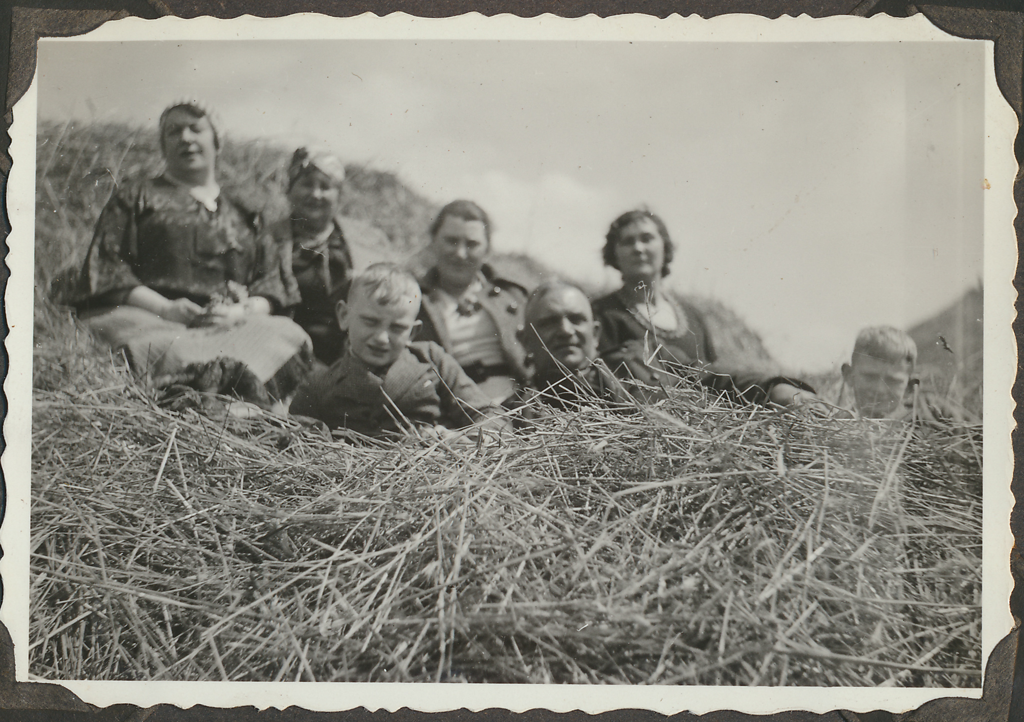 • fotografia ; kobieta ; dziecko ; chłopiec ; mężczyzna ; wieś ; stóg