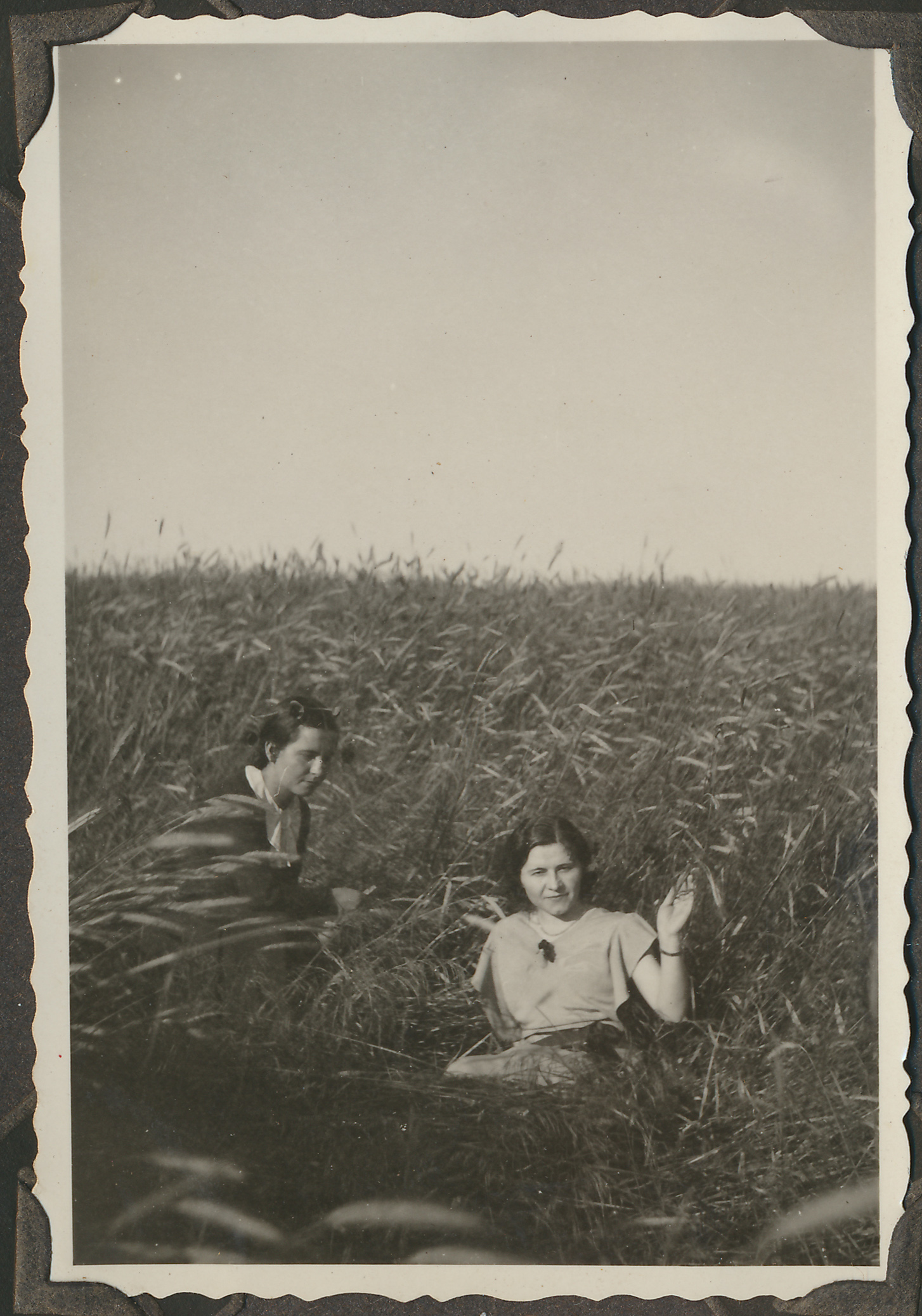 • fotografia ; kobieta ; pole uprawne ; zboże ; moda ; moda międzywojenna ; wieś