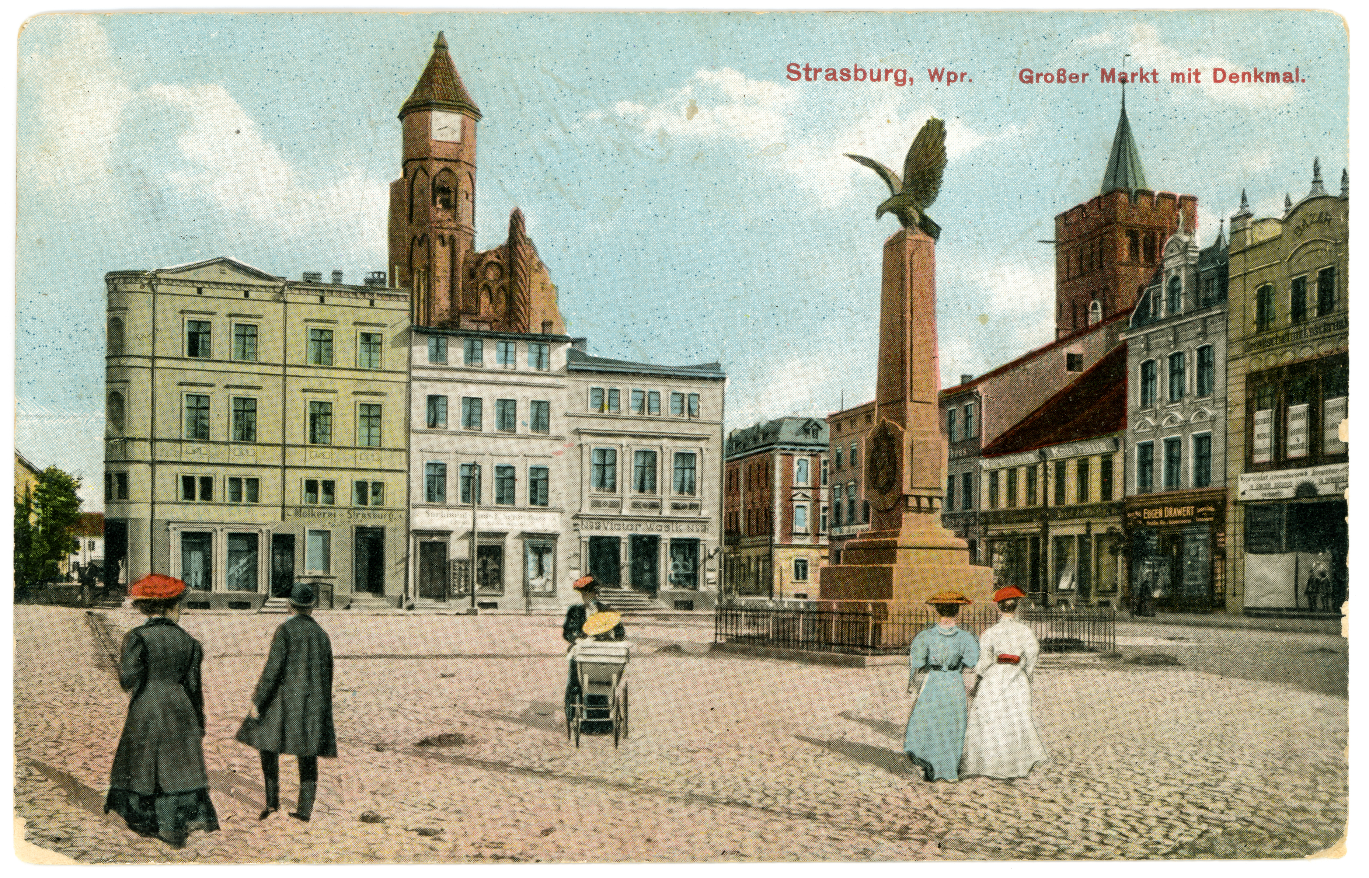 Strasburg, Wpr. Grosser Markt mit Denkmal.