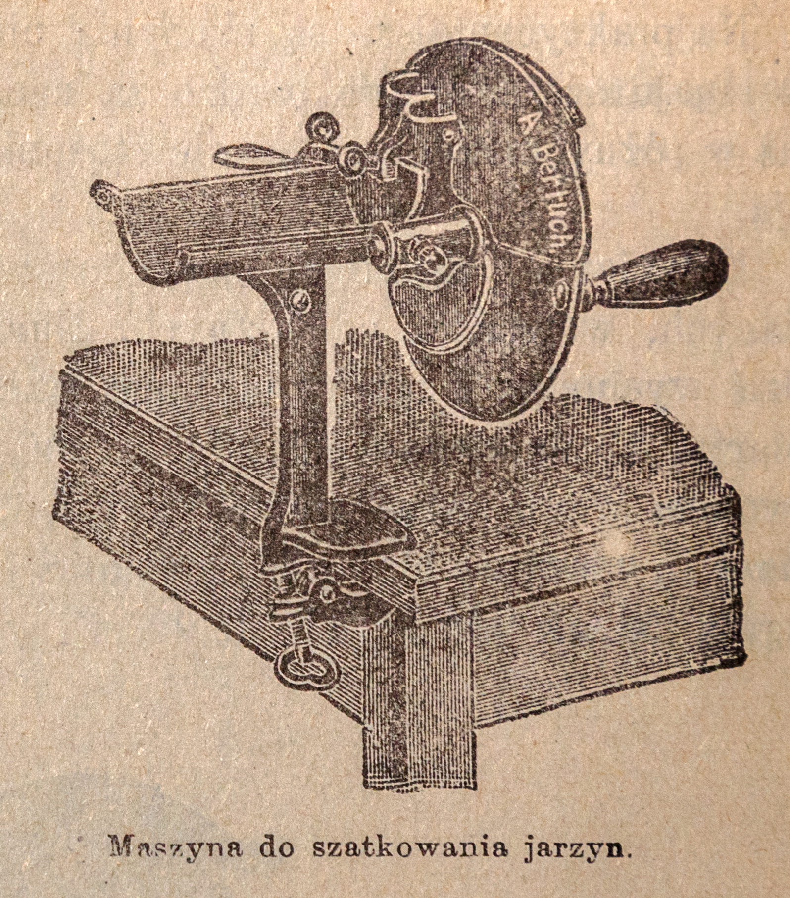 • książka kucharska ; książka ; kuchnia polska ; przepis kulinarny ; gotowanie ; sprzęt kuchenny ; szatkownica ; jarzyny ; warzywa ; Bertuch Alfred ; Berlin