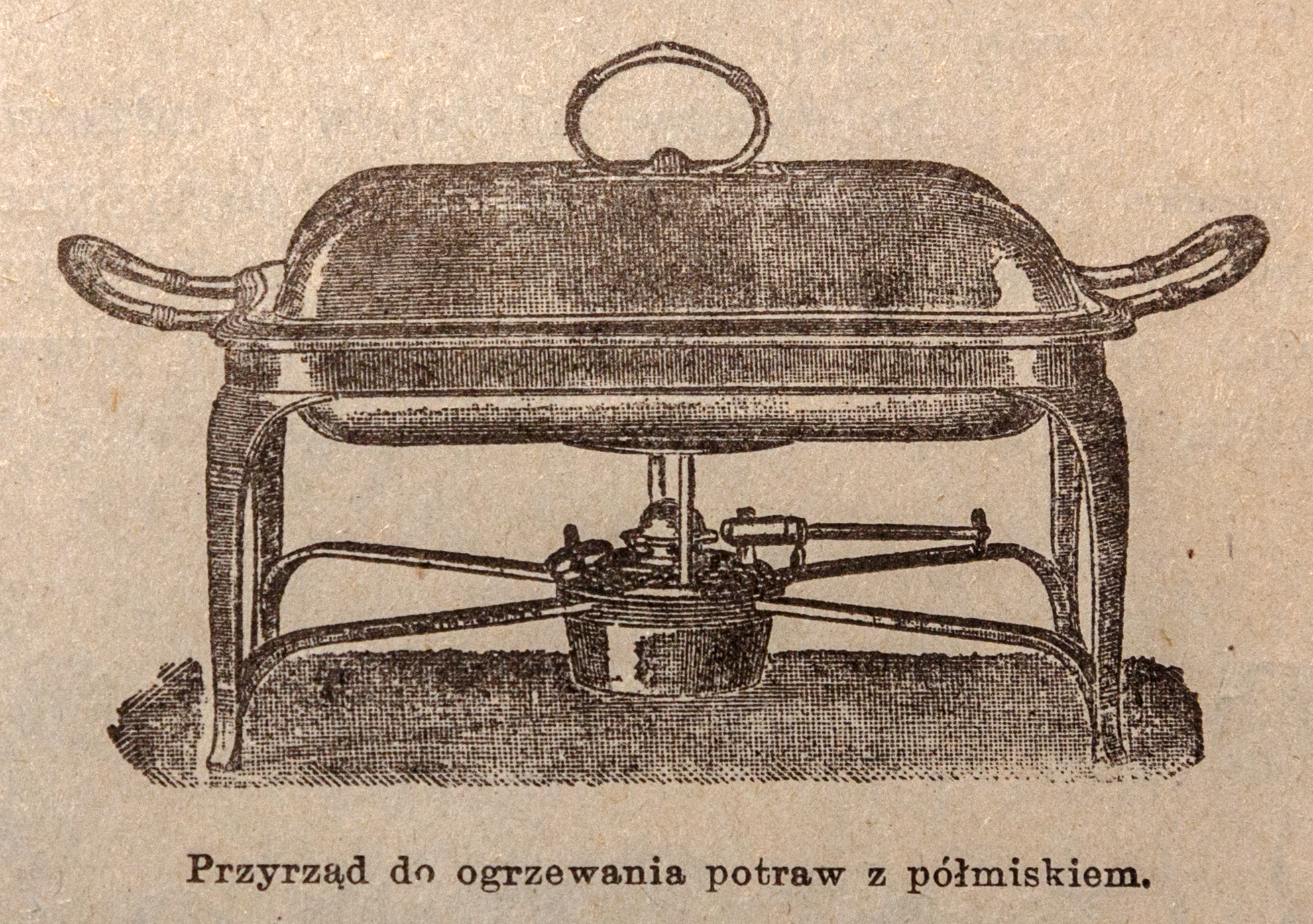 • książka kucharska ; książka ; kuchnia polska ; przepis kulinarny ; gotowanie ; sprzęt kuchenny ; podgrzewacz ; półmisek ; palnik