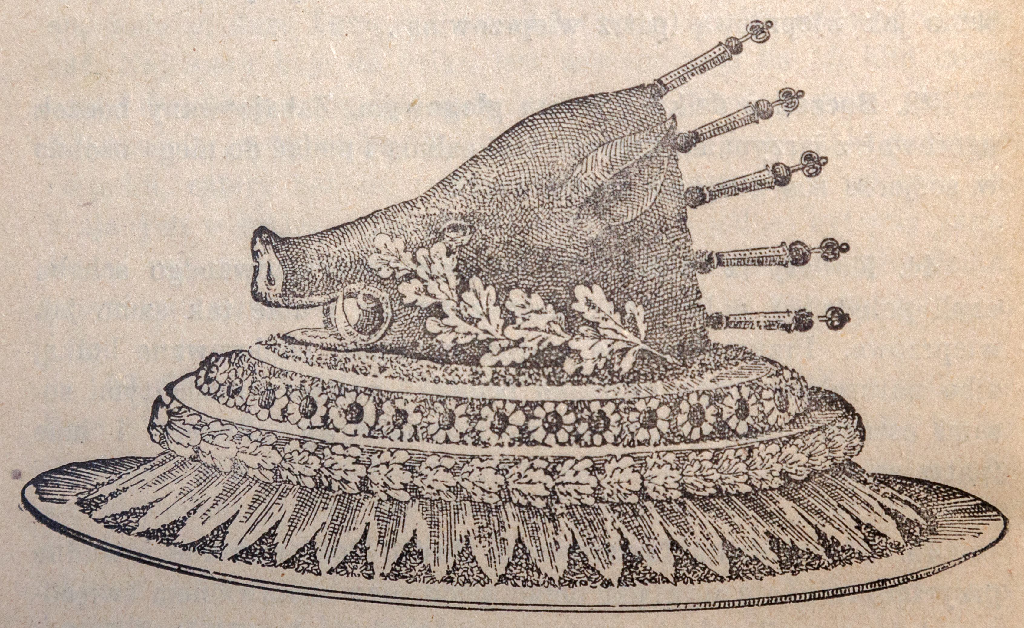 • książka kucharska ; książka ; kuchnia polska ; przepis kulinarny ; potrawa ; danie ; gotowanie ; dziczyzna ; mięso ; dzik ; półmisek ; dekoracja