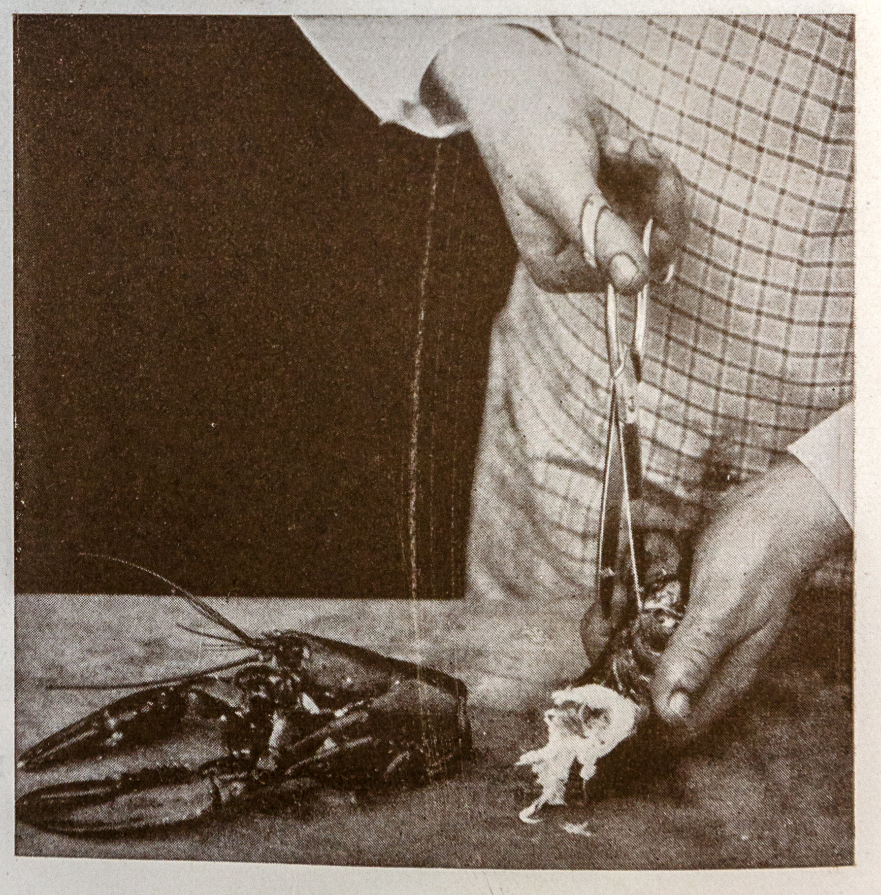 Wyjmowanie mięsa z szyjki homara