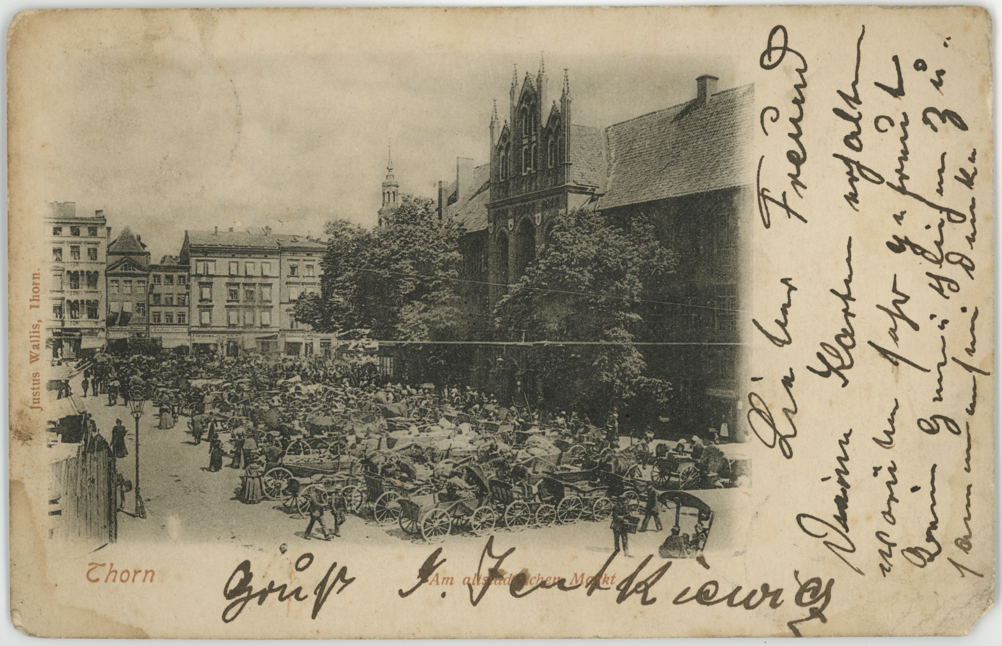 • pocztówka ; fotografia ; Rynek Staromiejski w Toruniu ; Ratusz Staromiejski w Toruniu ; targ ; Toruń