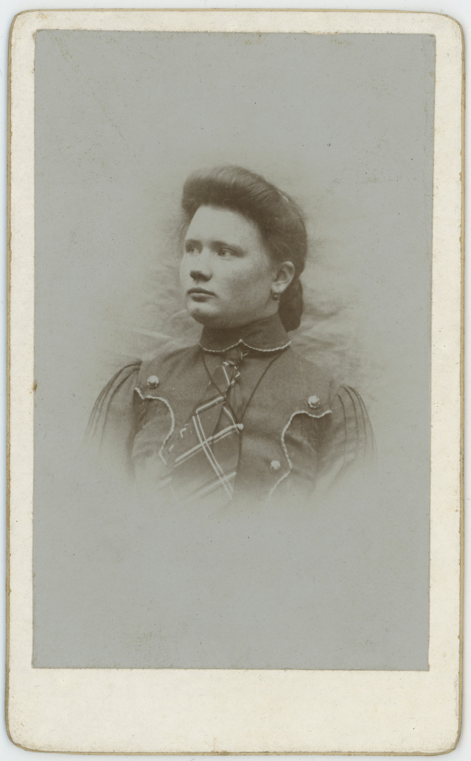 • fotografia ; portret ; atelier fotograficzne ; studio fotograficzne ; zakład fotograficzny ; kobieta ; moda ; moda XIX w. ; fryzura