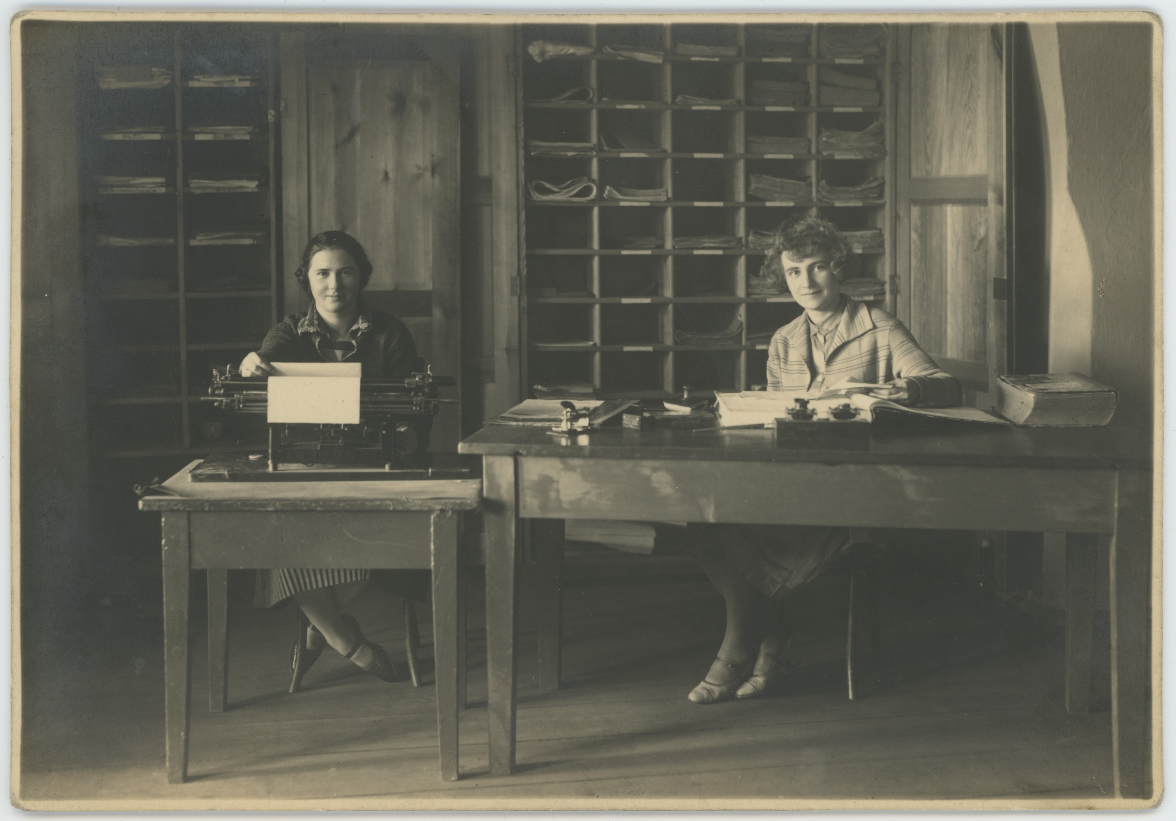 • fotografia ; wojsko ; służba intendentury ; 8. Oddział Służby Intendentury w Toruniu ; biuro ; sprzęt biurowy ; kobieta ; Toruń ; moda ; moda międzywojenna