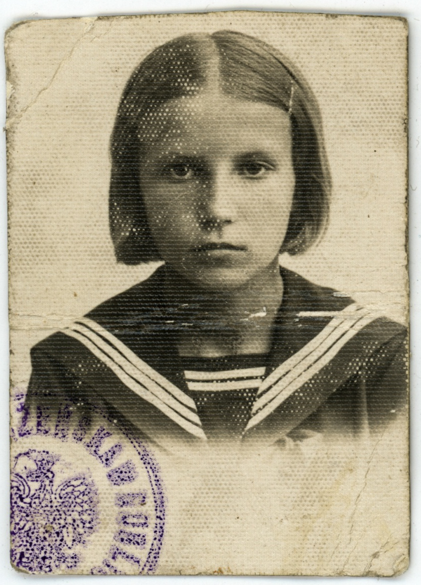 • fotografia ; portret ; dziewczynka ; moda ; moda międzywojenna ; mundurek szkolny