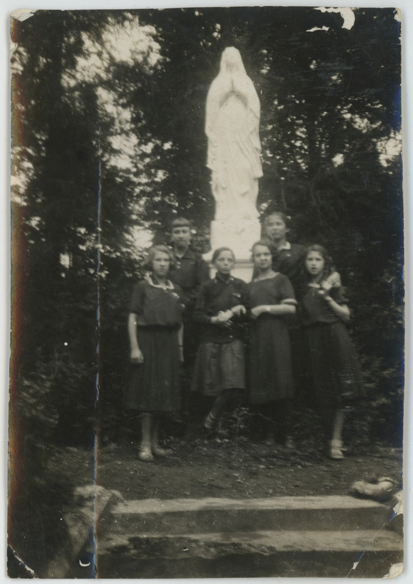 • fotografia ; portret ; dziewczyna ; moda ; moda międzywojenna ; religia ; chrześcijaństwo ; kult maryjny ; posąg Maryi