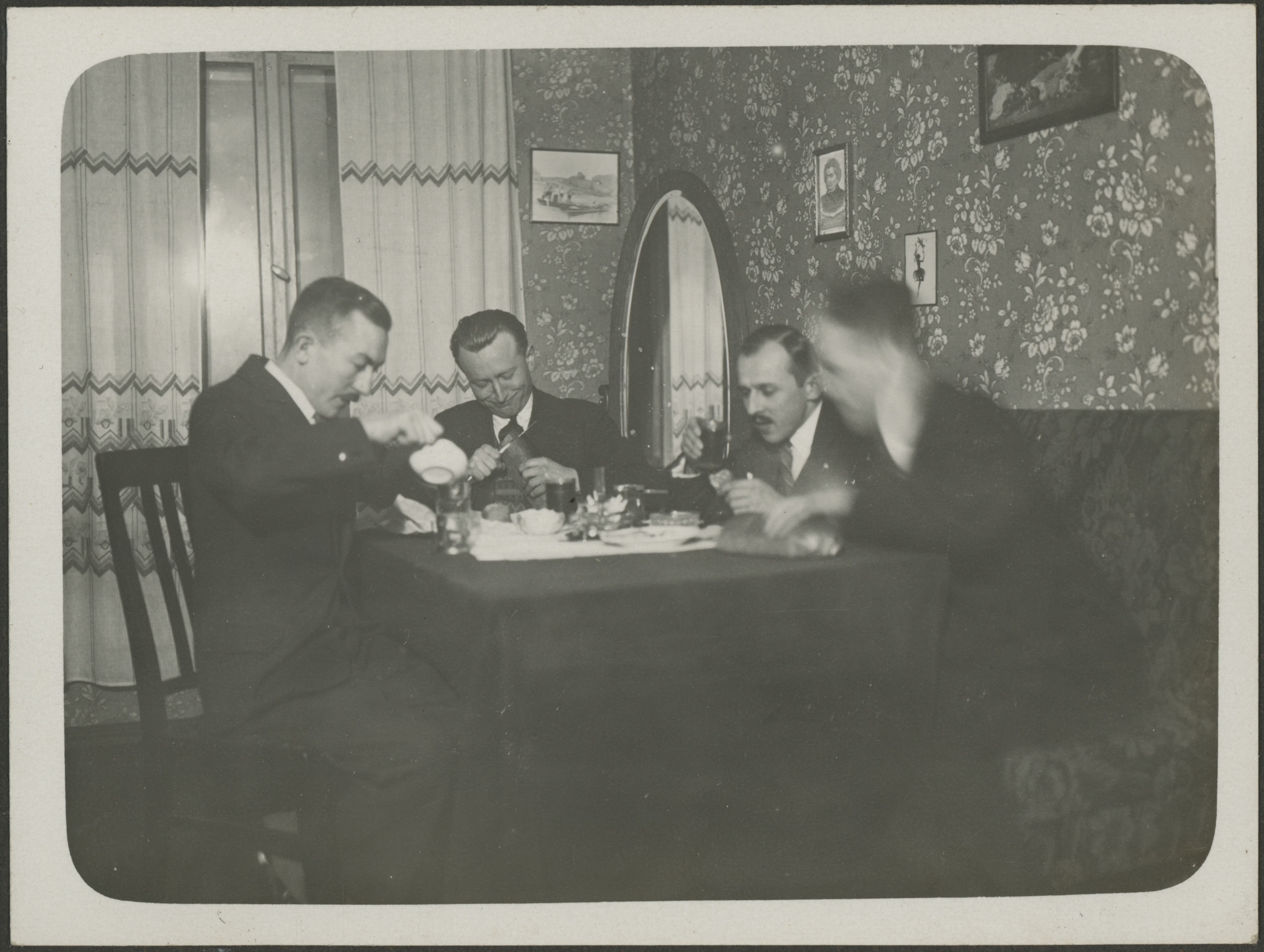 • fotografia ; portret ; uroczystość ; wystrój wnętrza ; mężczyzna ; moda ; moda międzywojenna ; Towarzystwo Wioślarskie w Toruniu ; Toruń