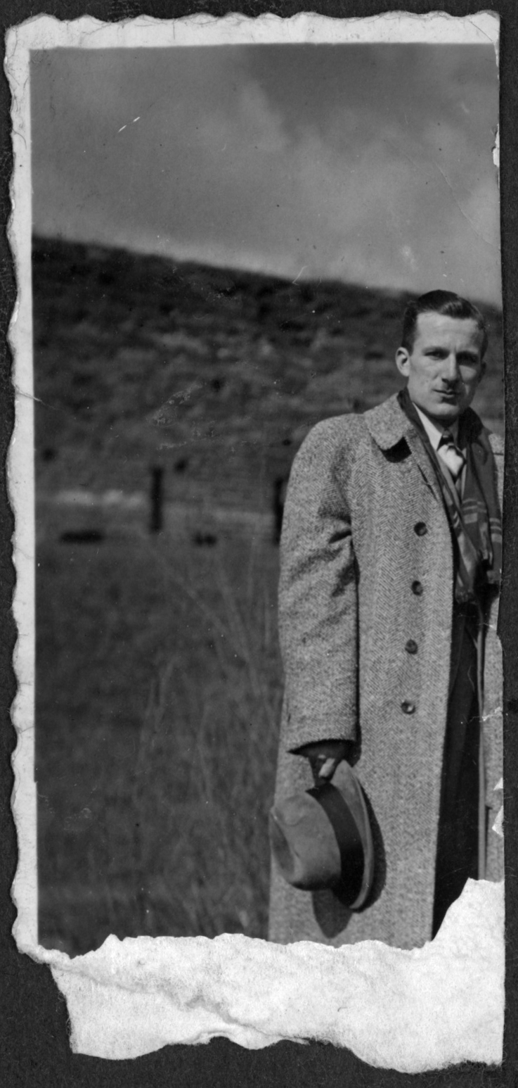 • fotografia ; portret ; mężczyzna ; płaszcz ; szalik ; kapelusz ; wzgórze ; plener