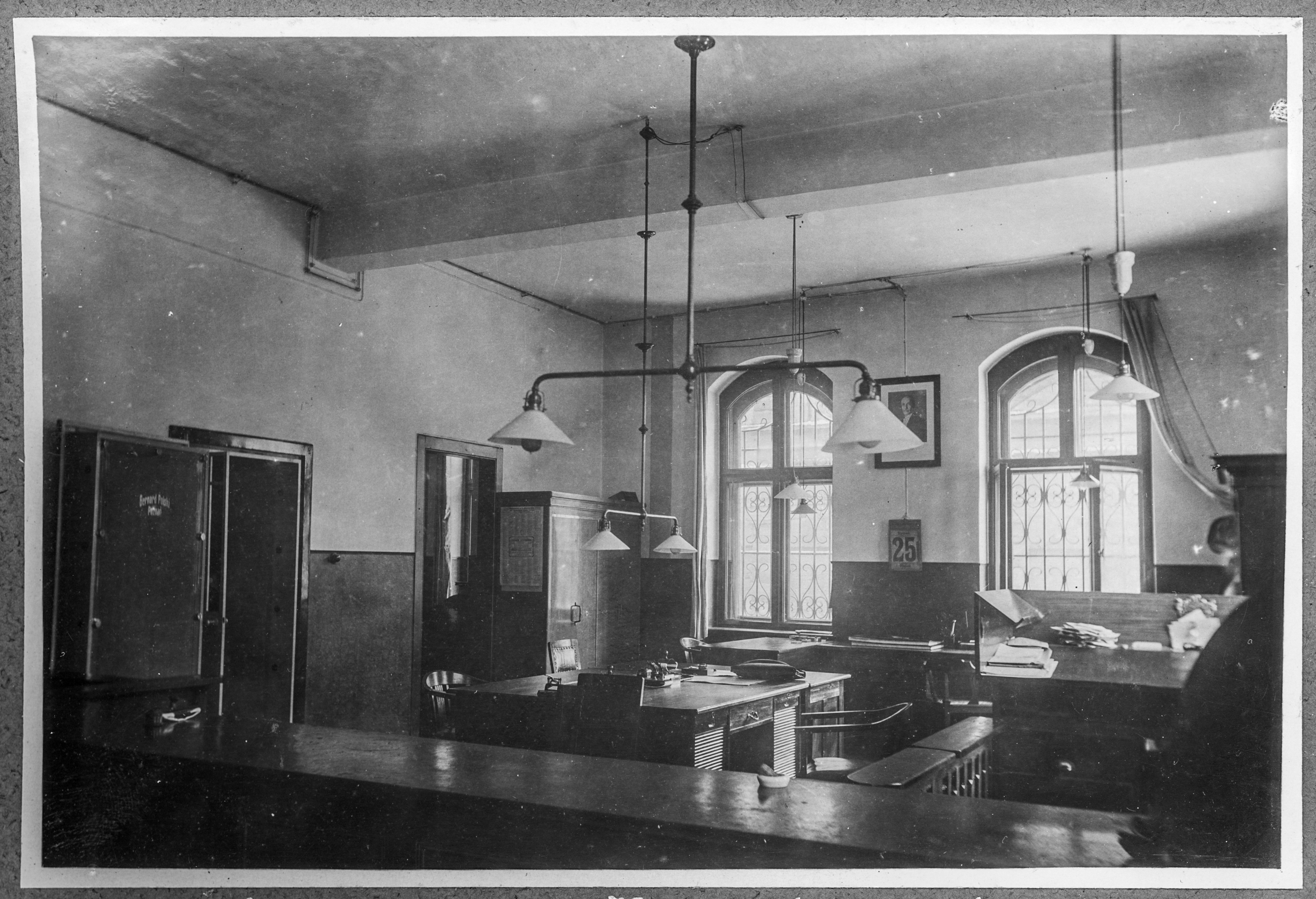 • fotografia ; Komunalna Kasa Oszczędności powiatu toruńskiego ; wnętrze ; lampa ; architektura ; finanse ; kasa ; urząd ; biuro ; Toruń