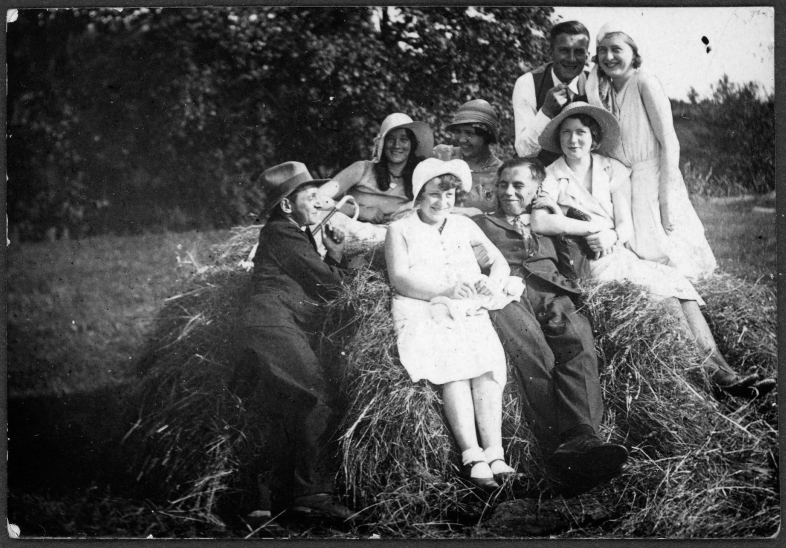 Kobiety i mężczyźni na stogu siana