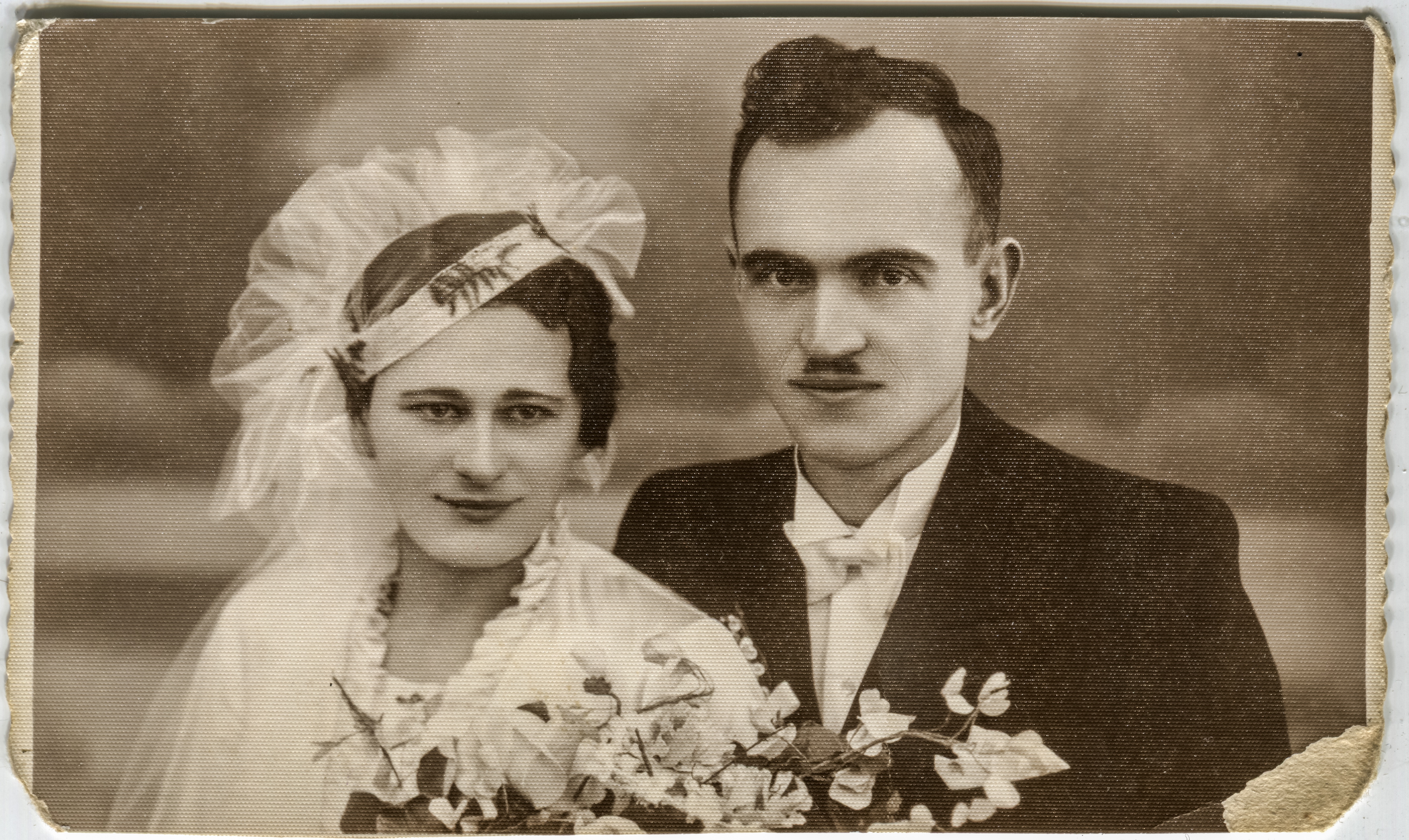 • fotografia ; portret ; portret ślubny ; małżeństwo ; mężczyzna ; kobieta ; moda ; moda międzywojenna