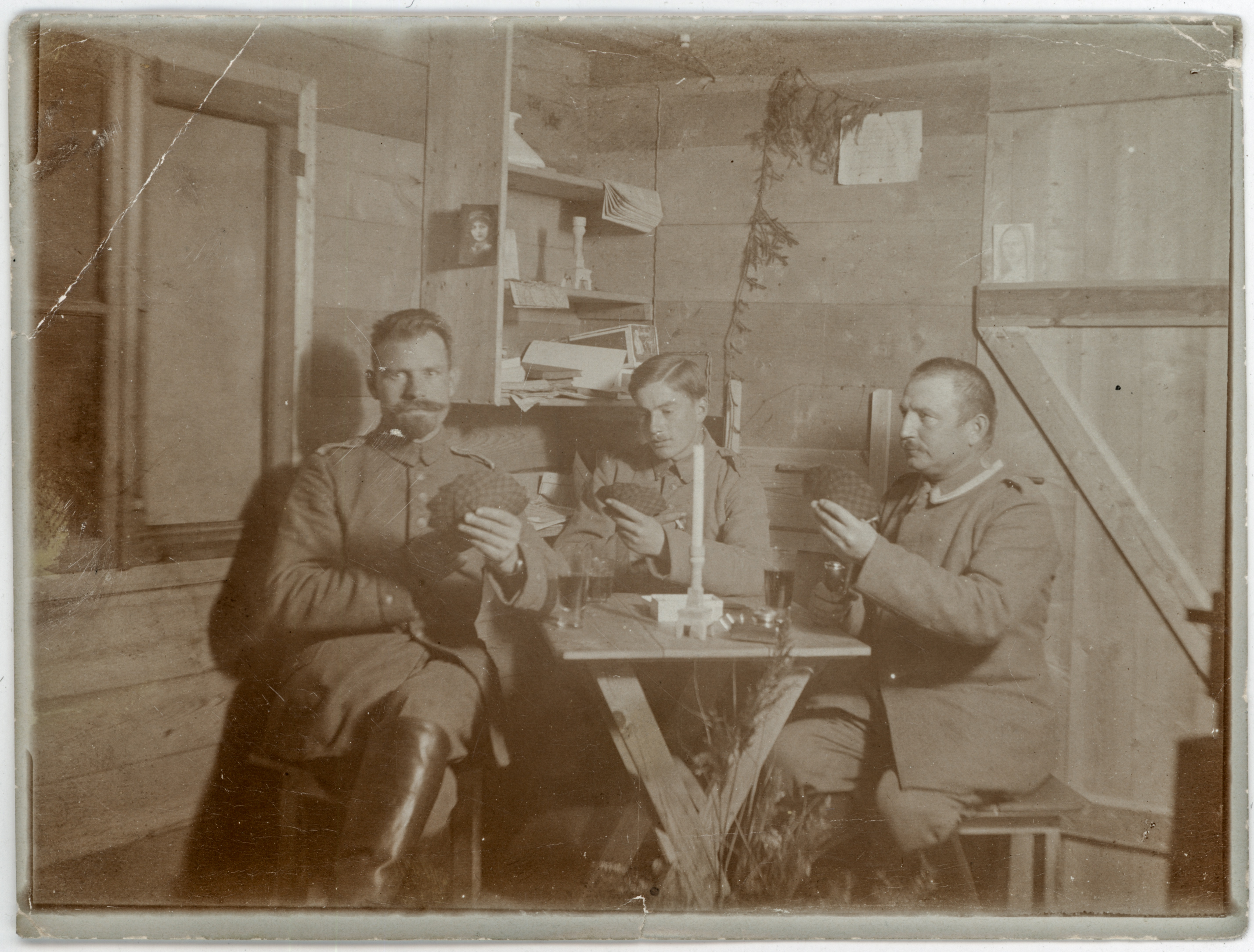 • fotografia ; żołnierz ; żołnierz niemiecki ; żołnierz pruski ; oficer ; mundur ; mundur wojskowy ; stolik ; karty ; książka