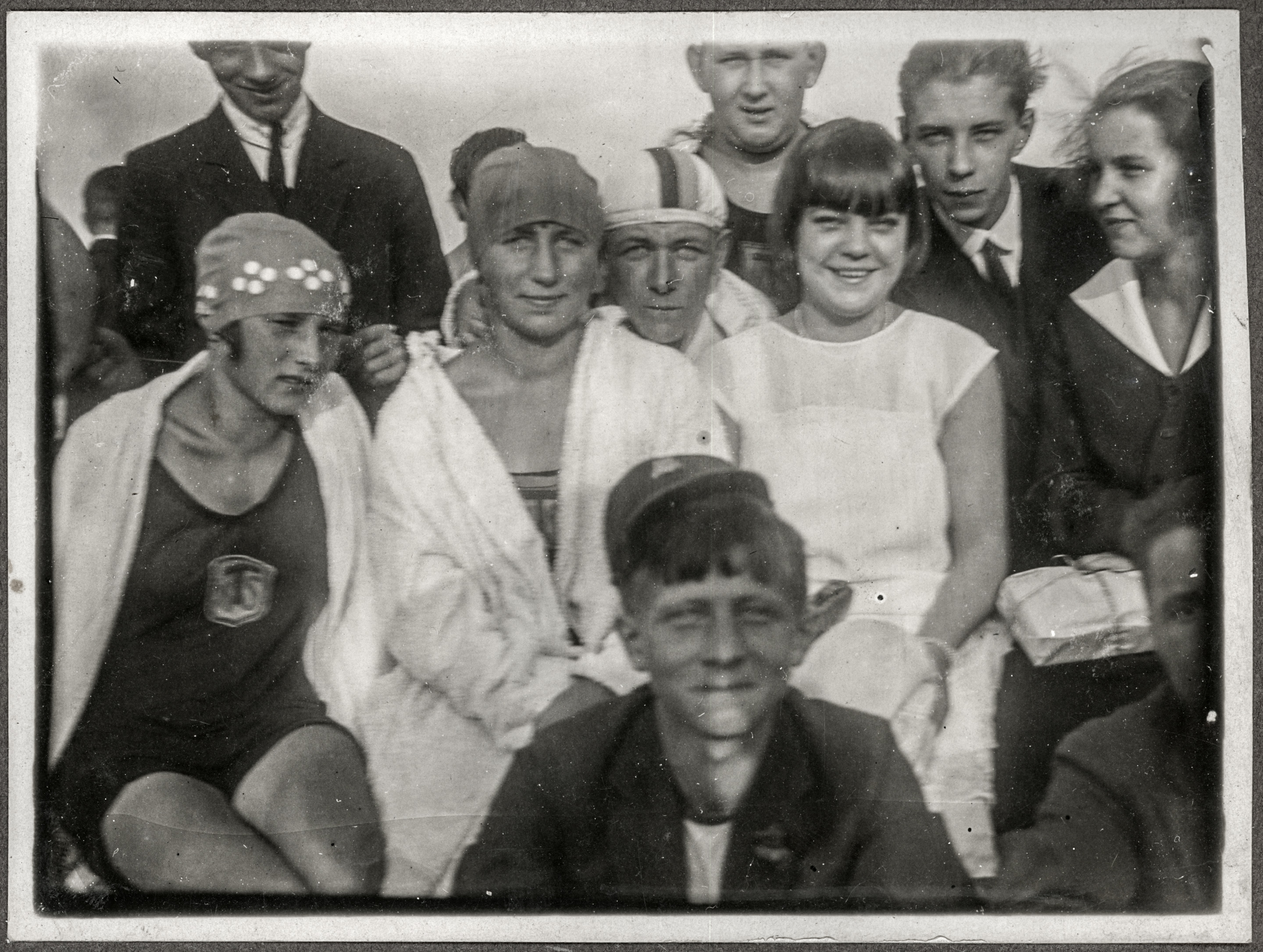 • fotografia ; dziewczyna ; chłopiec ; strój kąpielowy ; czepek pływacki ; zawody sportowe