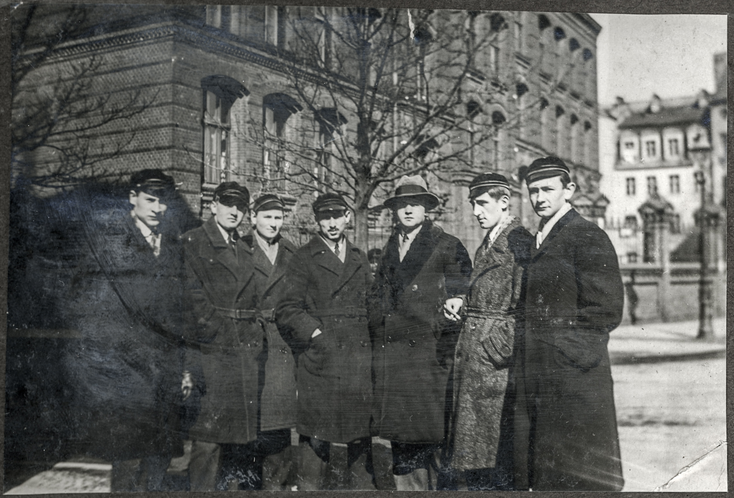 • fotografia ; mężczyzna ; uczeń ; szkoła ; budynek ; Państwowa Szkoła Budownictwa w Poznaniu ; zabudowania