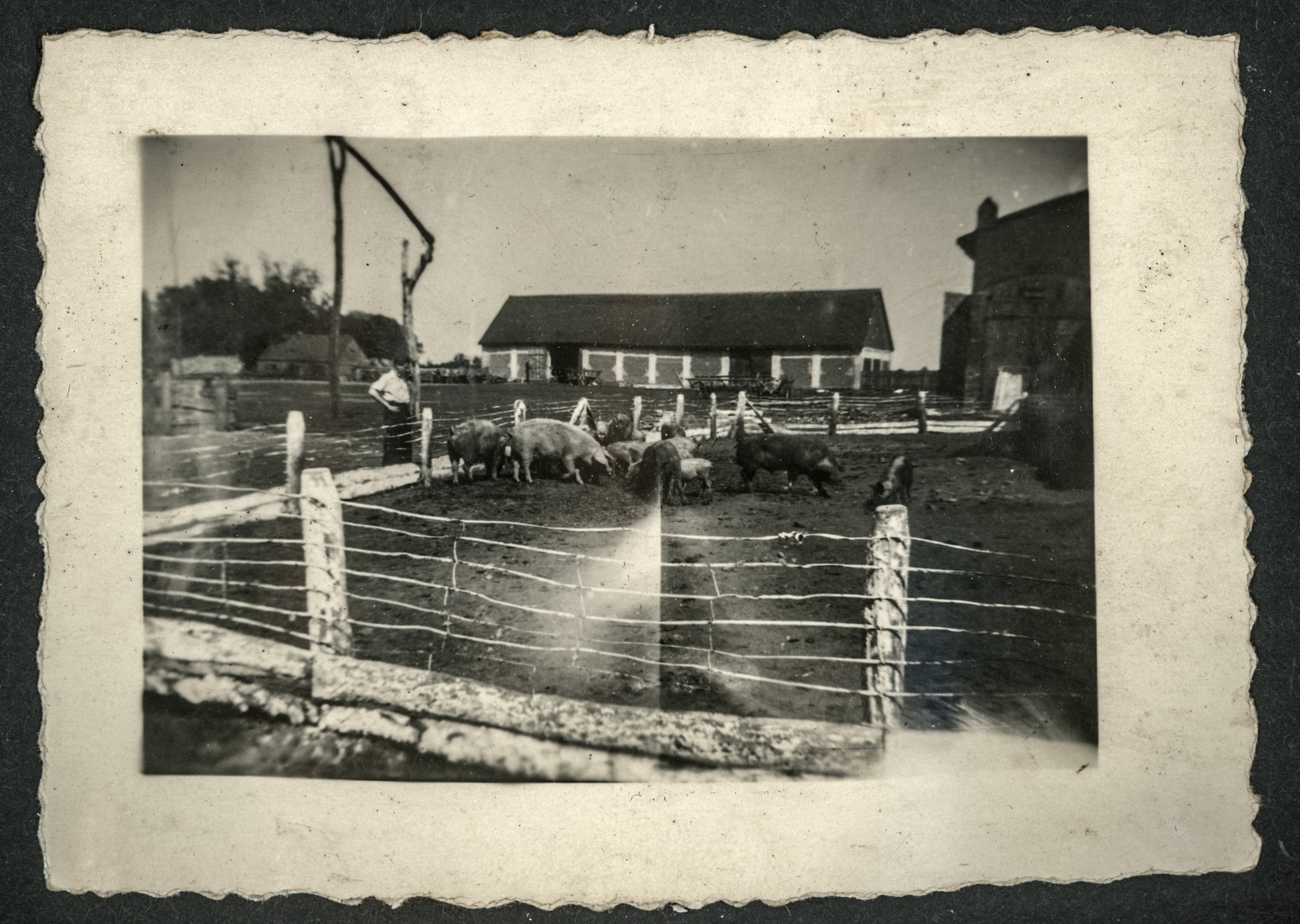 • fotografia ; portret ; mężczyzna ; rolnictwo ; gospodarstwo rolne ; hodowla ; zwierzę hodowlane ; trzoda chlewna