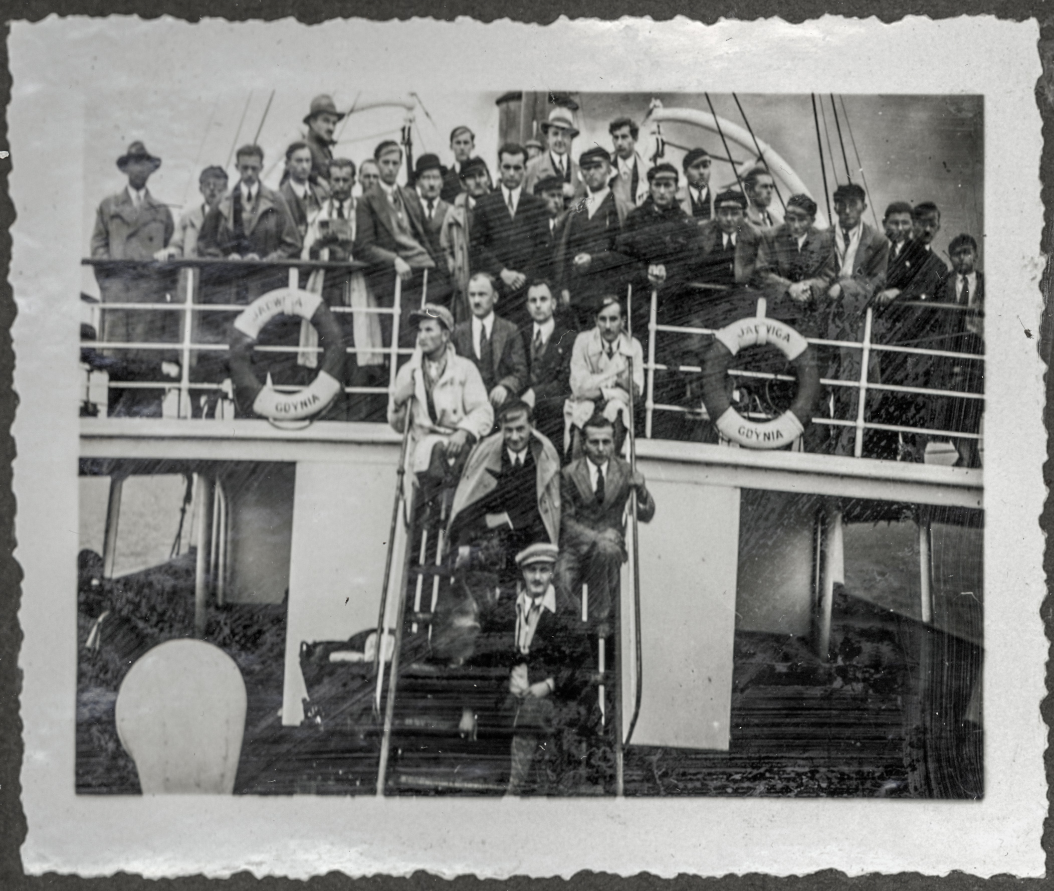• fotografia ; mężczyzna ; uczeń ; Państwowa Szkoła Budownictwa w Poznaniu ; pies ; statek „Jadwiga” ; statek pasażerski ; żegluga przybrzeżna