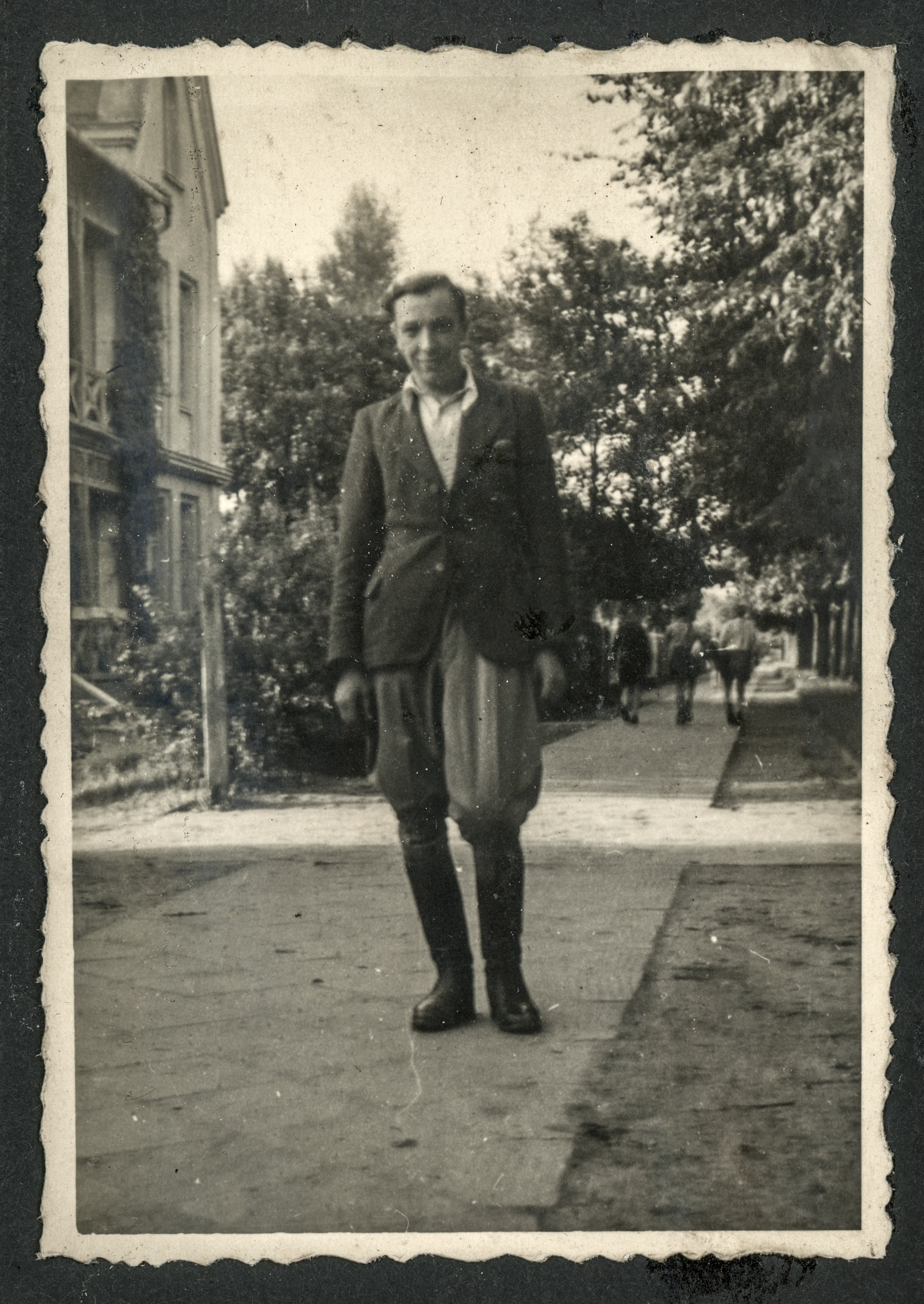 • fotografia ; portret ; mężczyzna ; moda ; moda międzywojenna ; jeździectwo ; krajobraz miejski