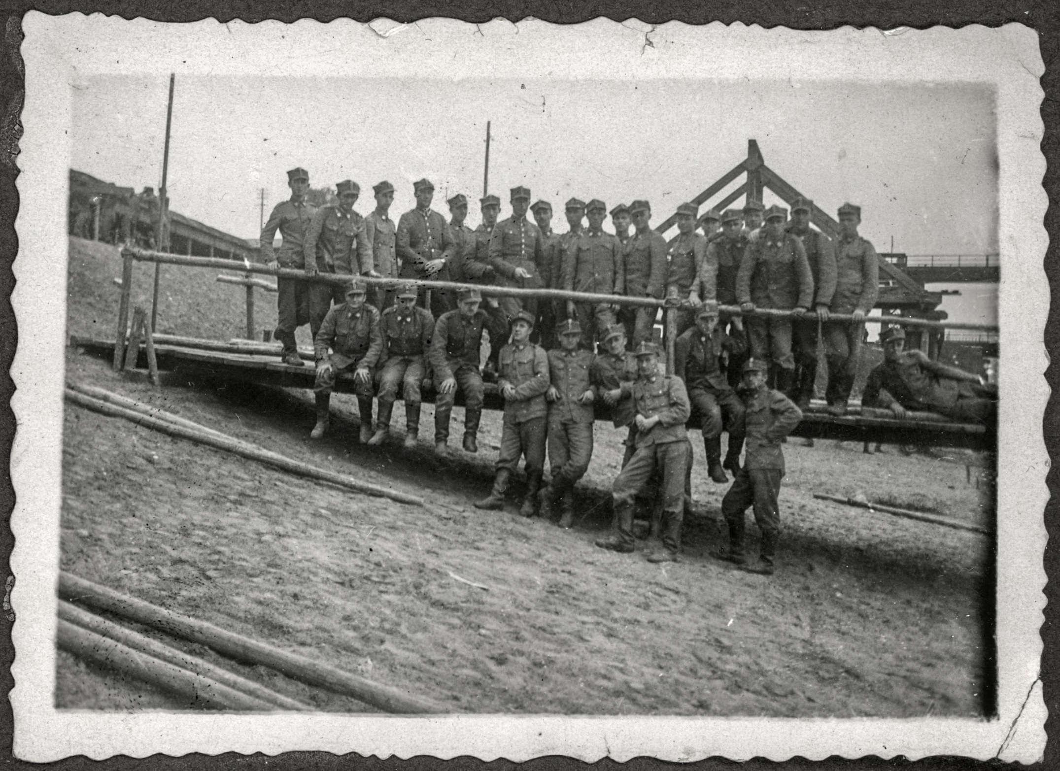 • fotografia ; żołnierz ; żołnierz polski ; wojska inżynieryjne ; mundur ; mundur wojskowy ; mundur wojska polskiego ; wojsko polskie ; most ; rzeka ; budynek