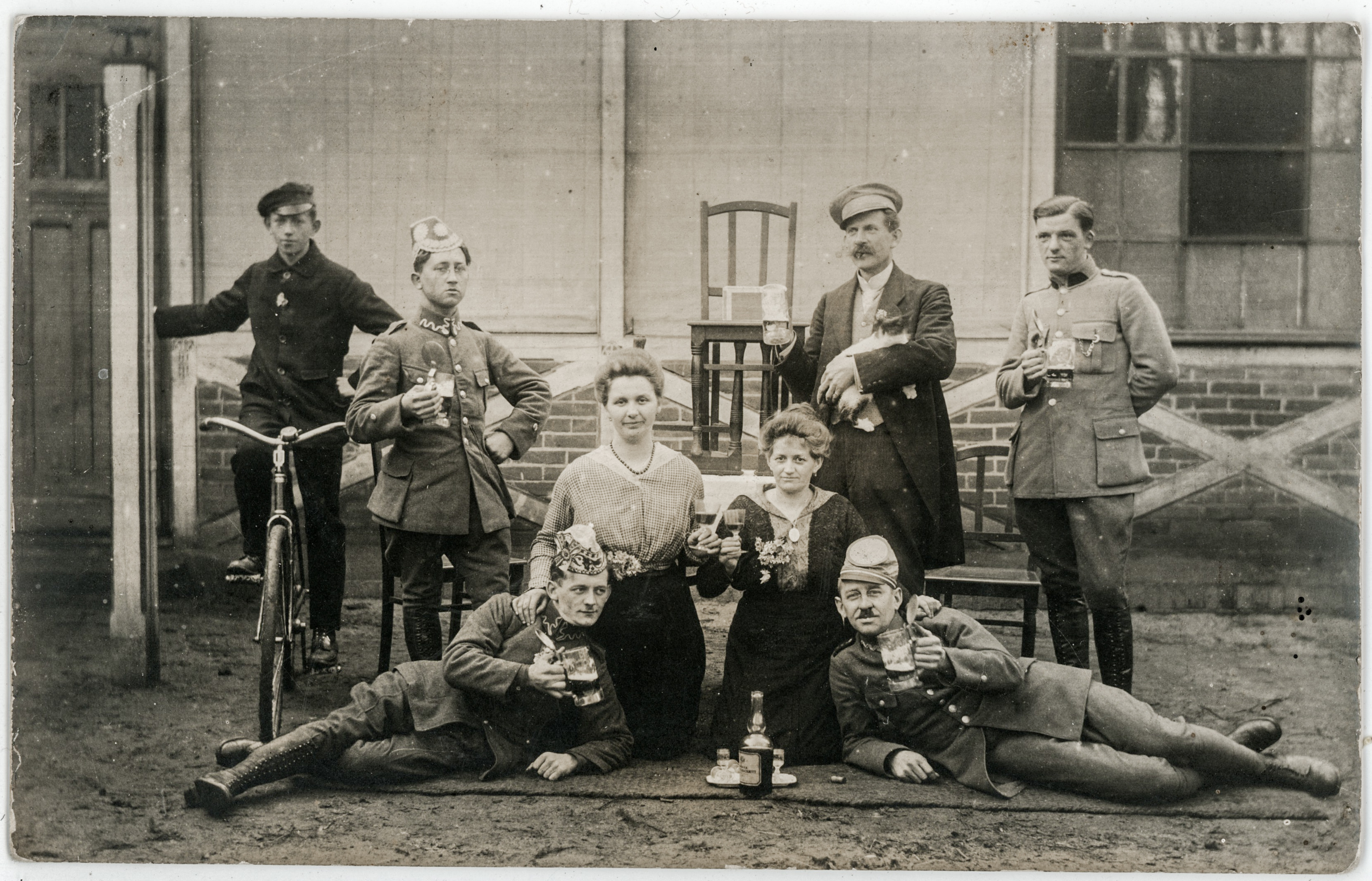 • portret ; mężczyzna ; kobieta ; alkohol ; piwo ; kufel ; rower ; moda ; moda okresu I wojny światowej